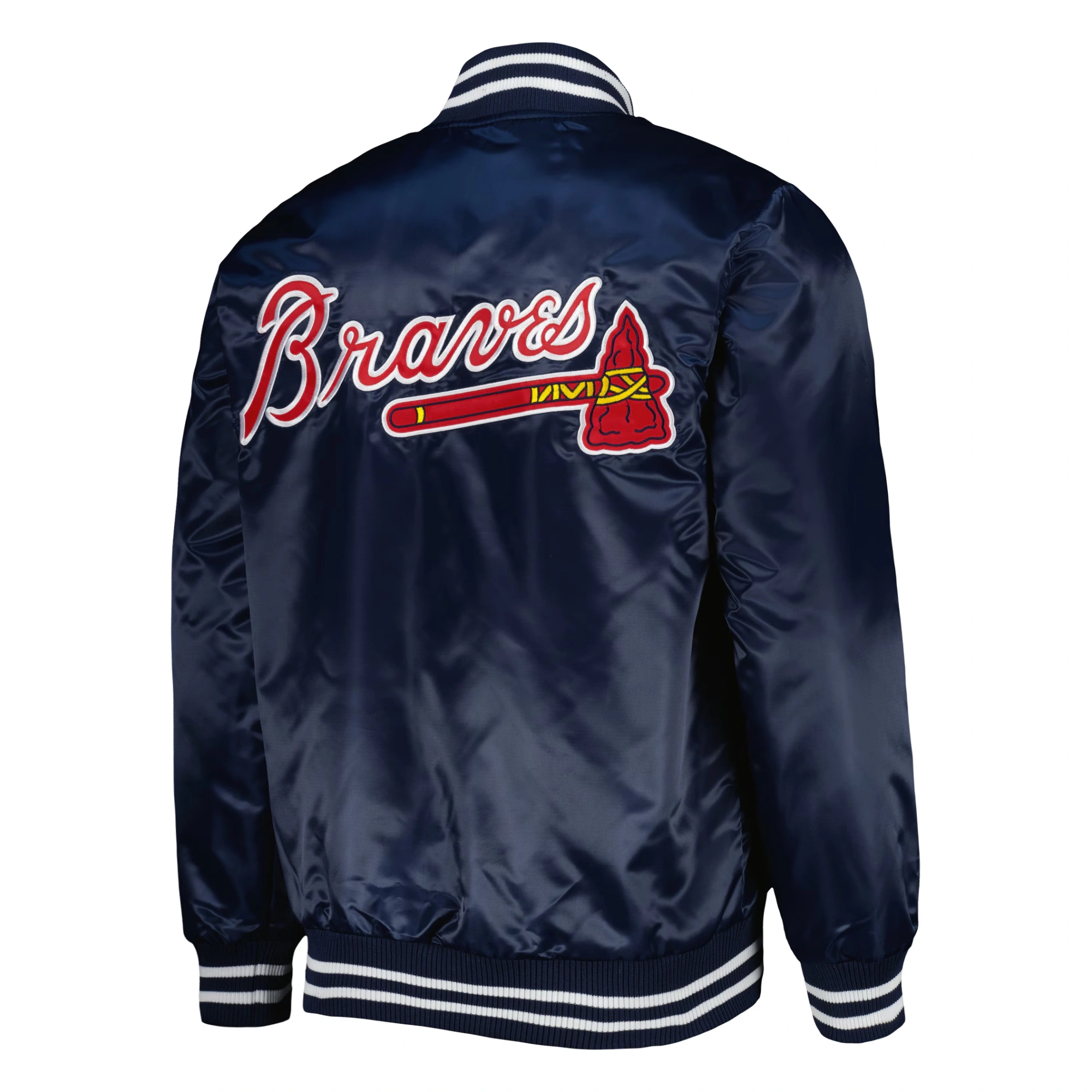 Atlanta Braves Patch Full-Snap Navy Blue Satin Varsity Jacket
