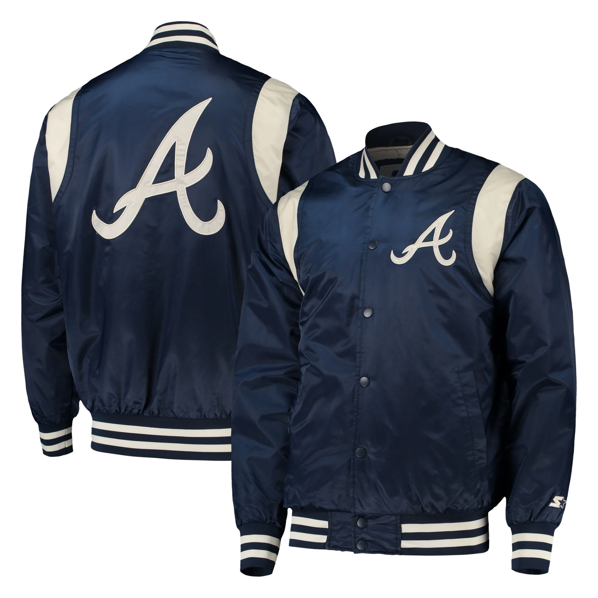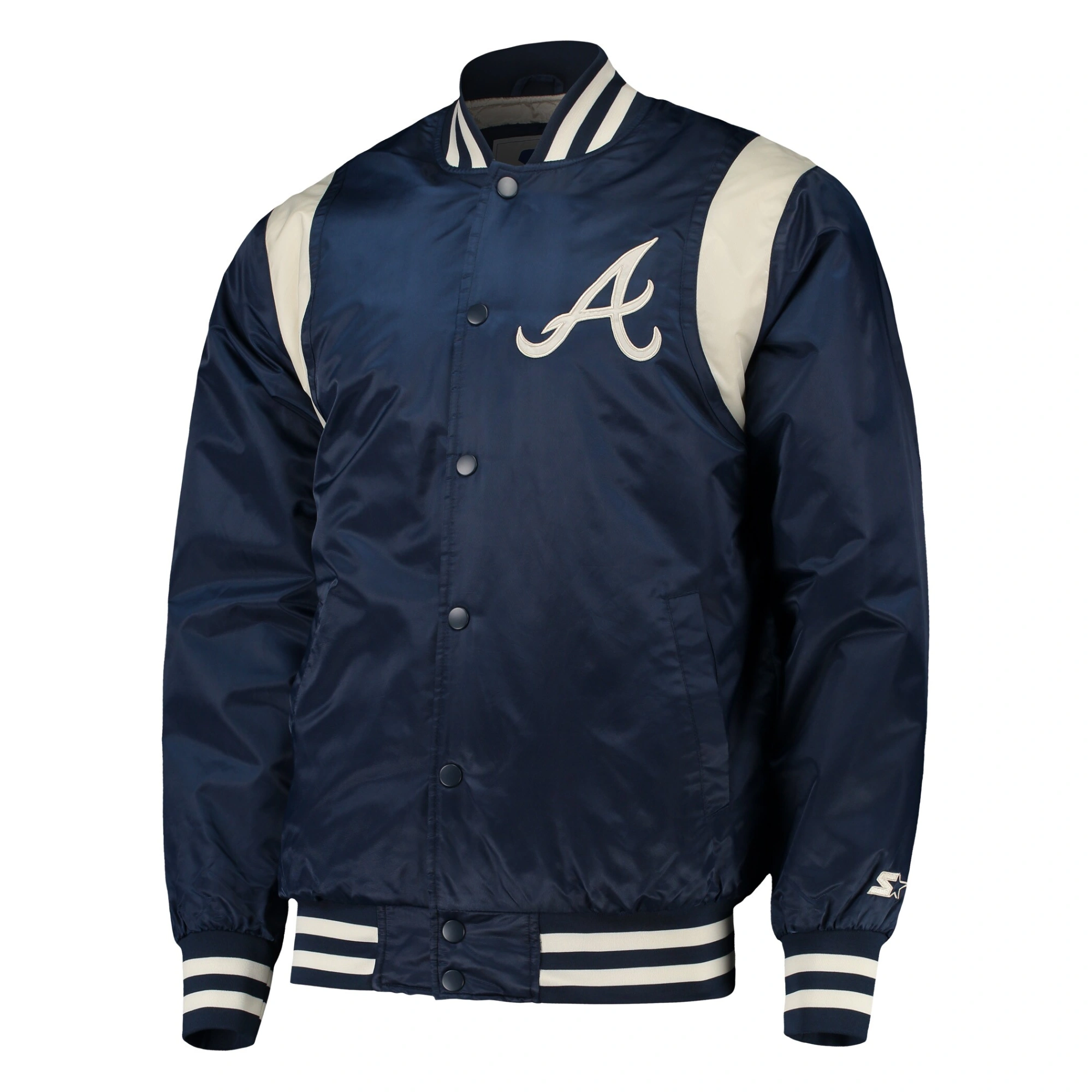 Atlanta Braves Prime Time Satin Varsity Jacket – Navy Blue