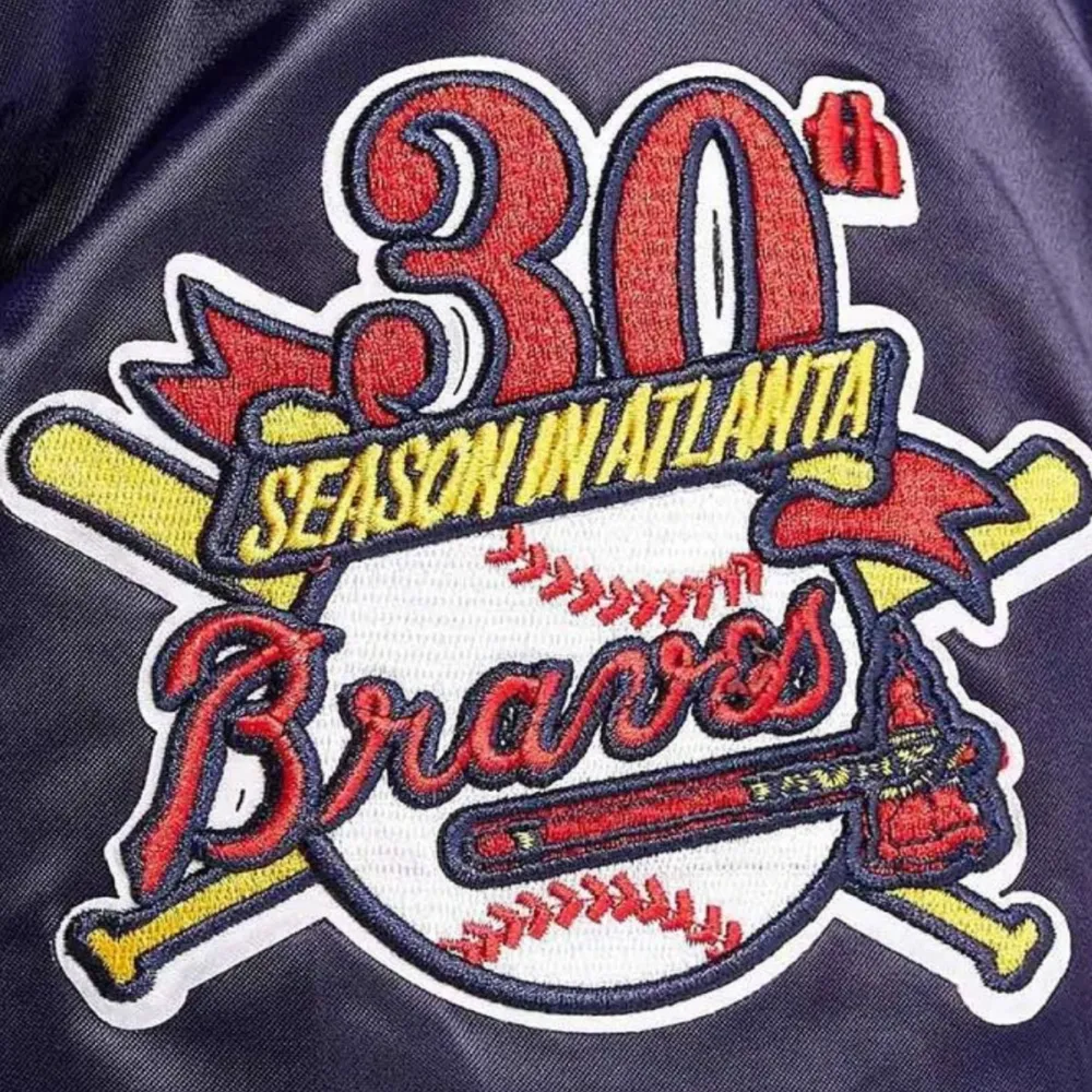 Atlanta Braves World Series Rib Knitted Satin Varsity Jacket – Navy Blue