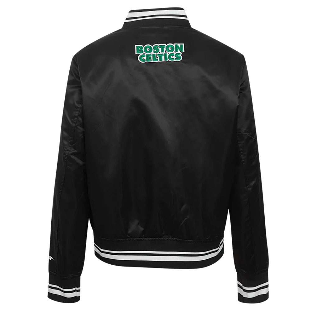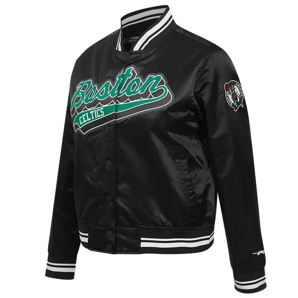 Boston Celtics Script Tail Black Satin Varsity Jacket
