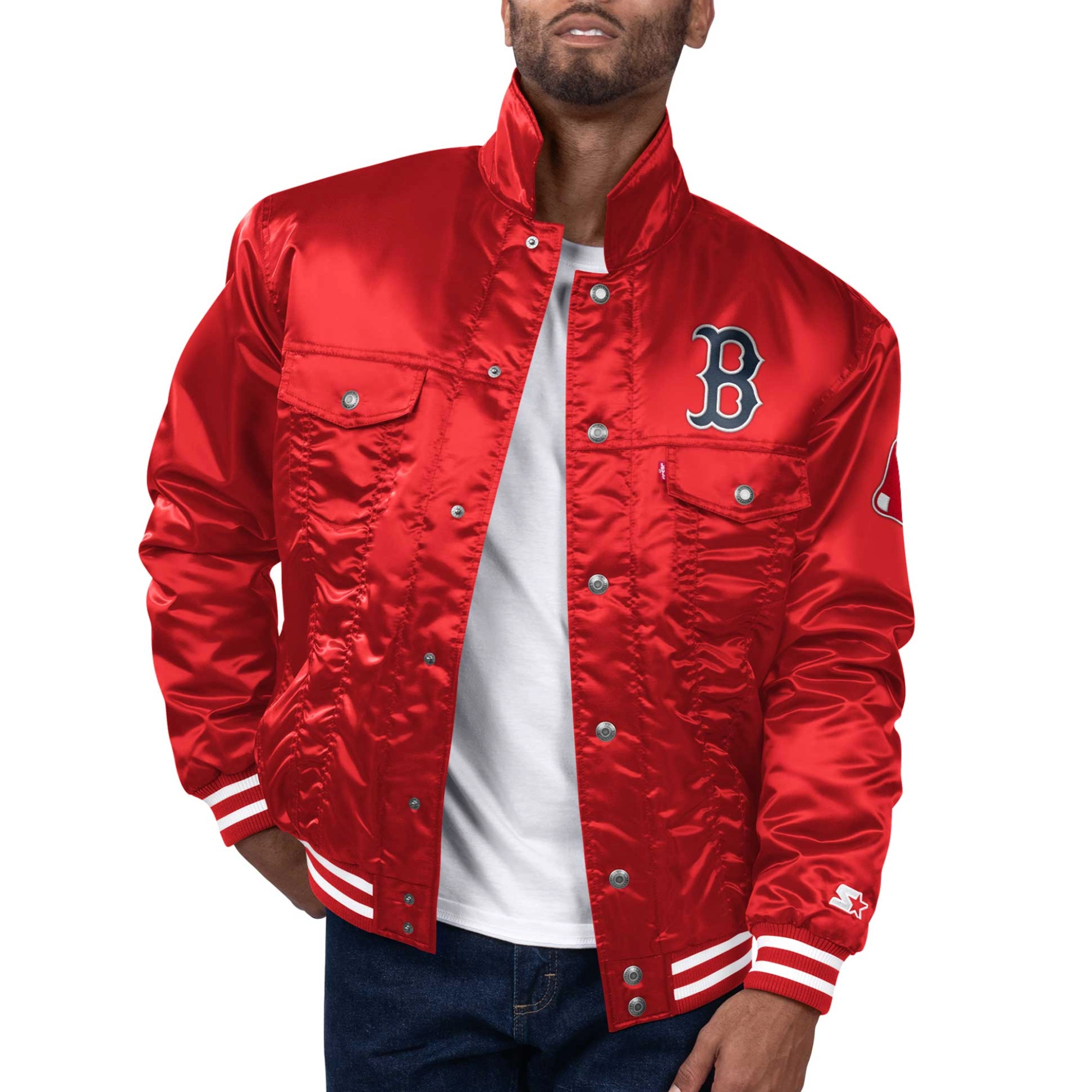 Boston Red Sox Silver Tab Satin Trucker Varsity Jacket – Red