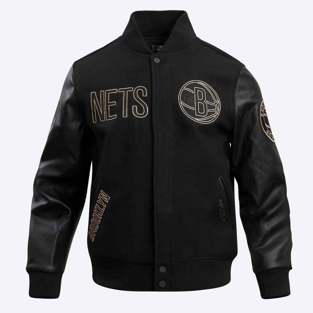 Brooklyn Nets Black & Gold Varsity Black Jacket