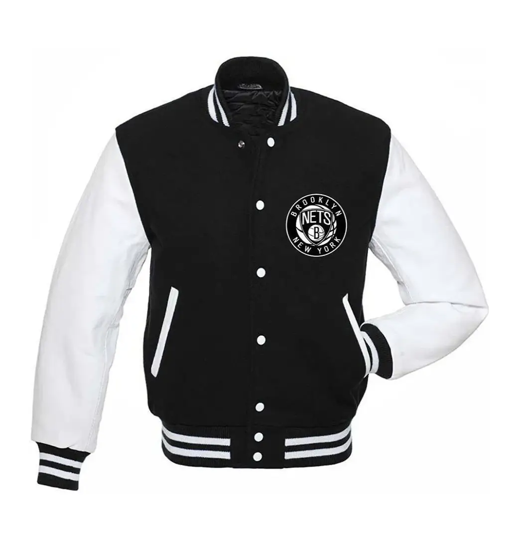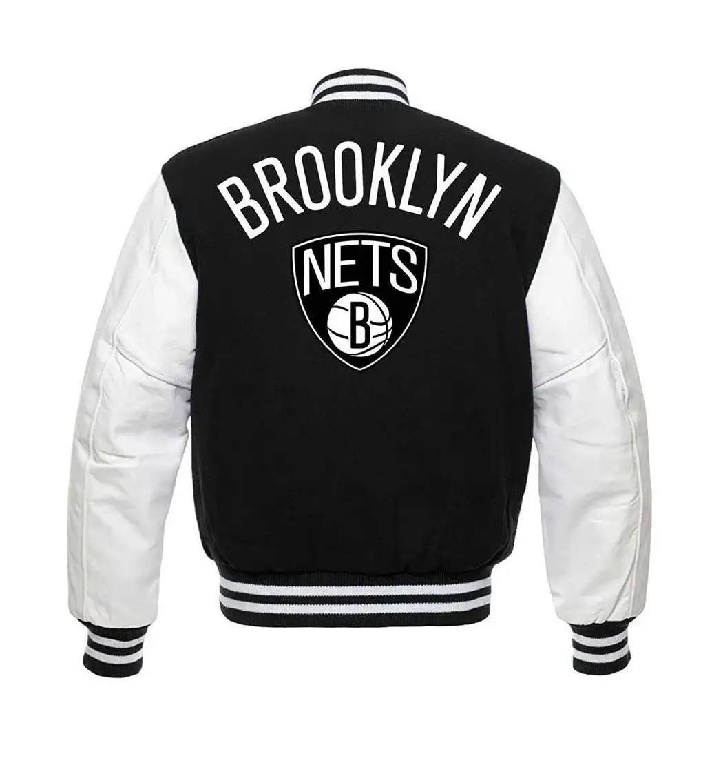 Brooklyn Nets Black Letterman Wool Varsity Jacket