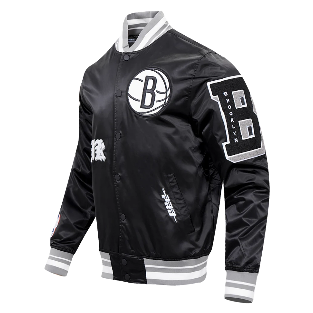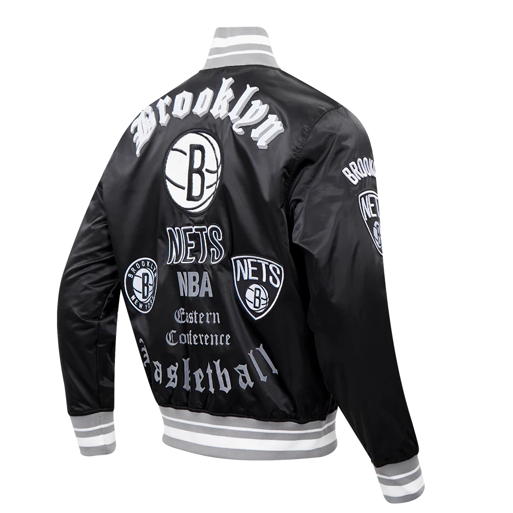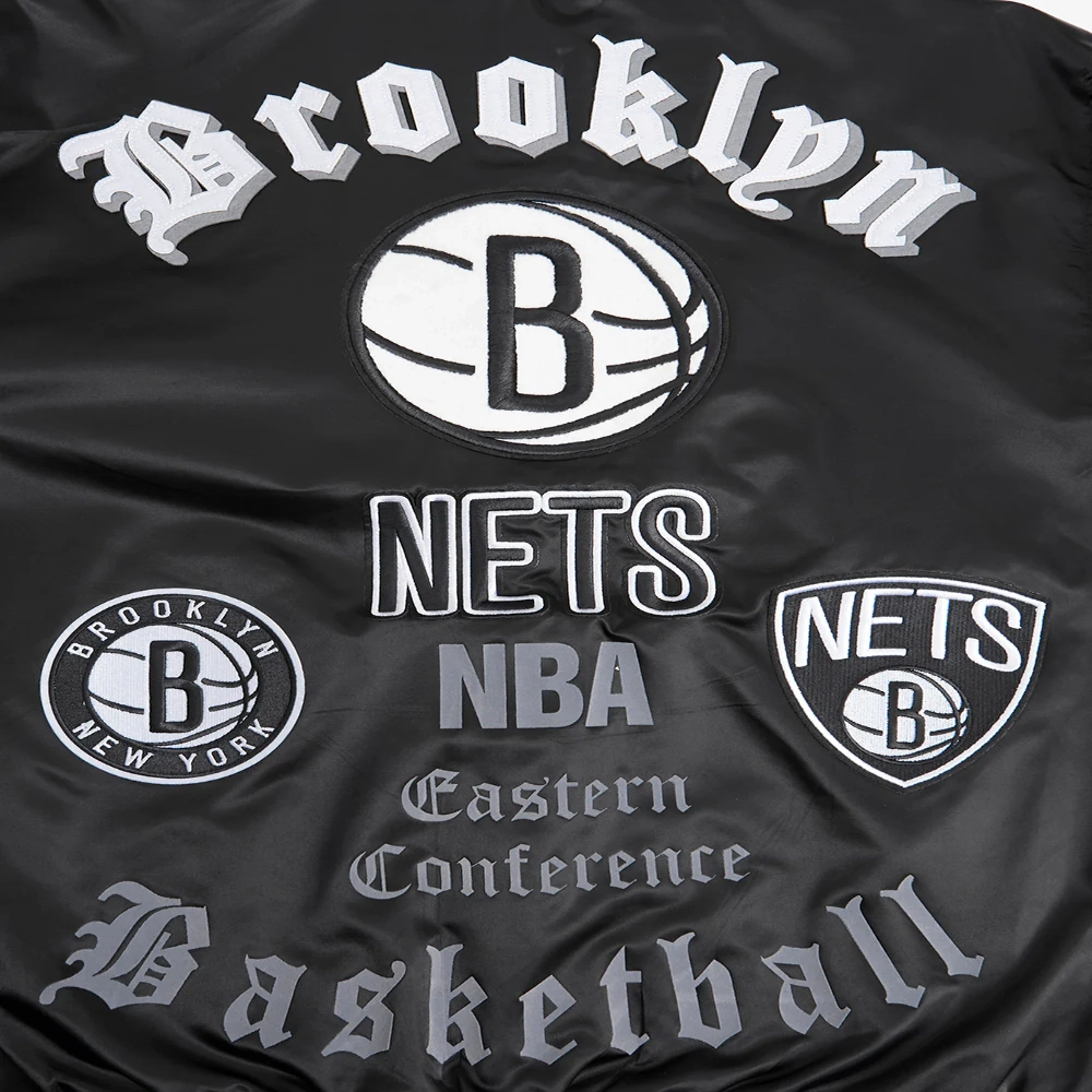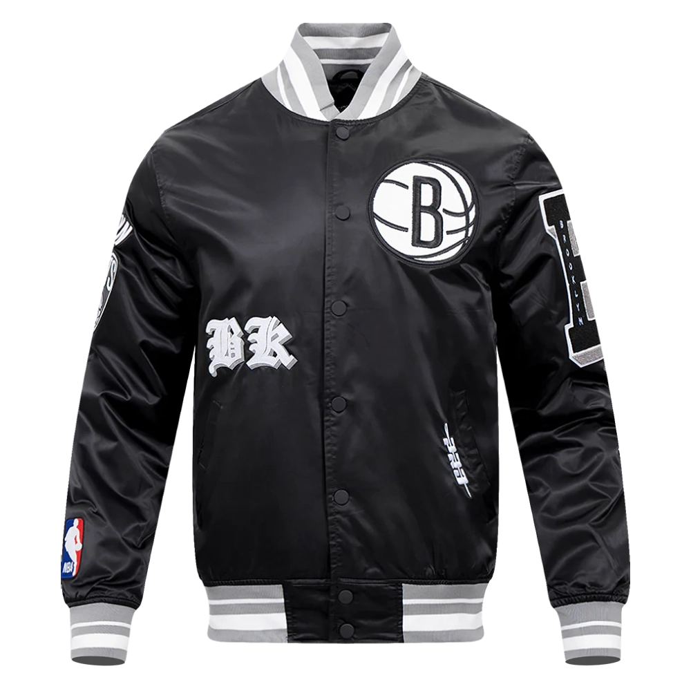 Brooklyn Nets Old English Rib Black Varsity Jacket