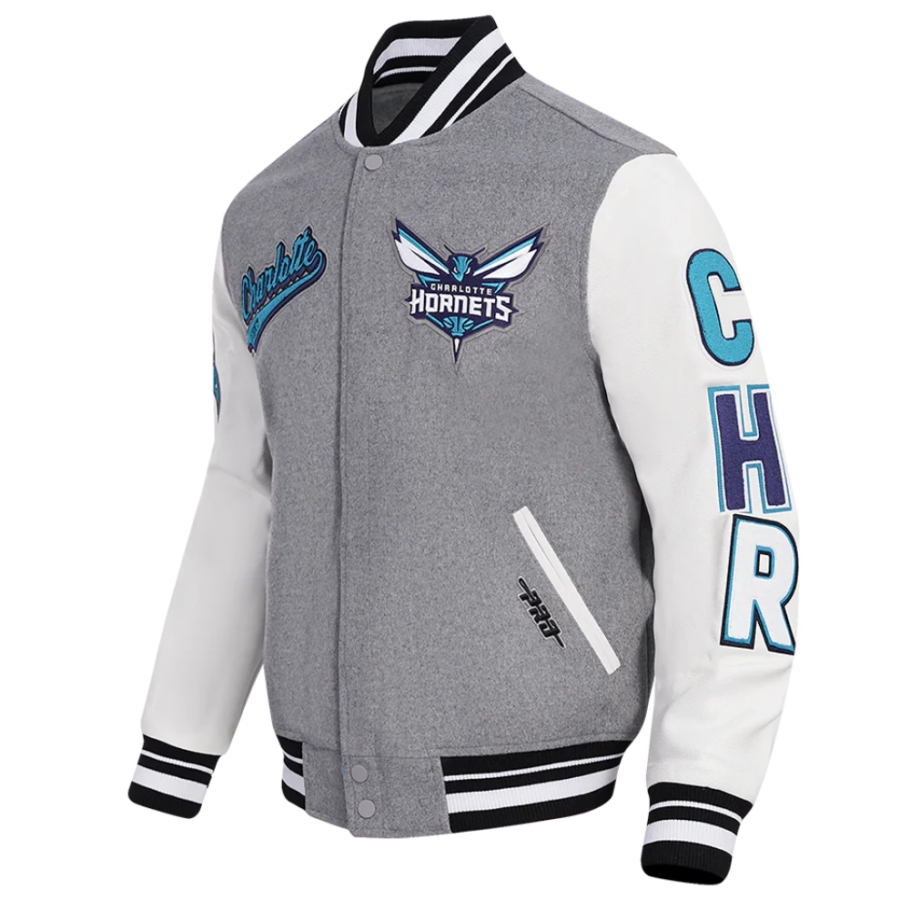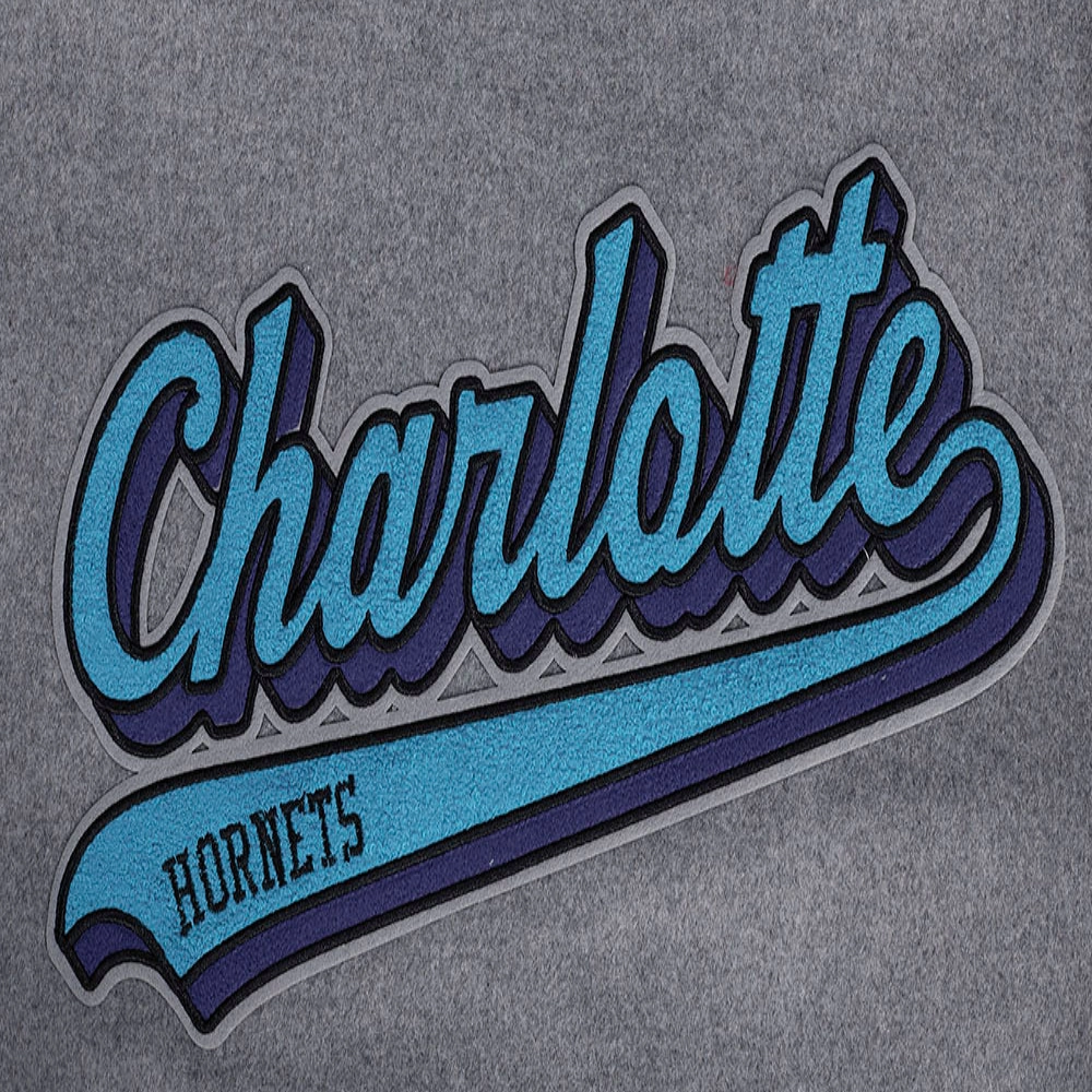 Charlotte Hornets Script Tail Grey Wool Varsity Jacket