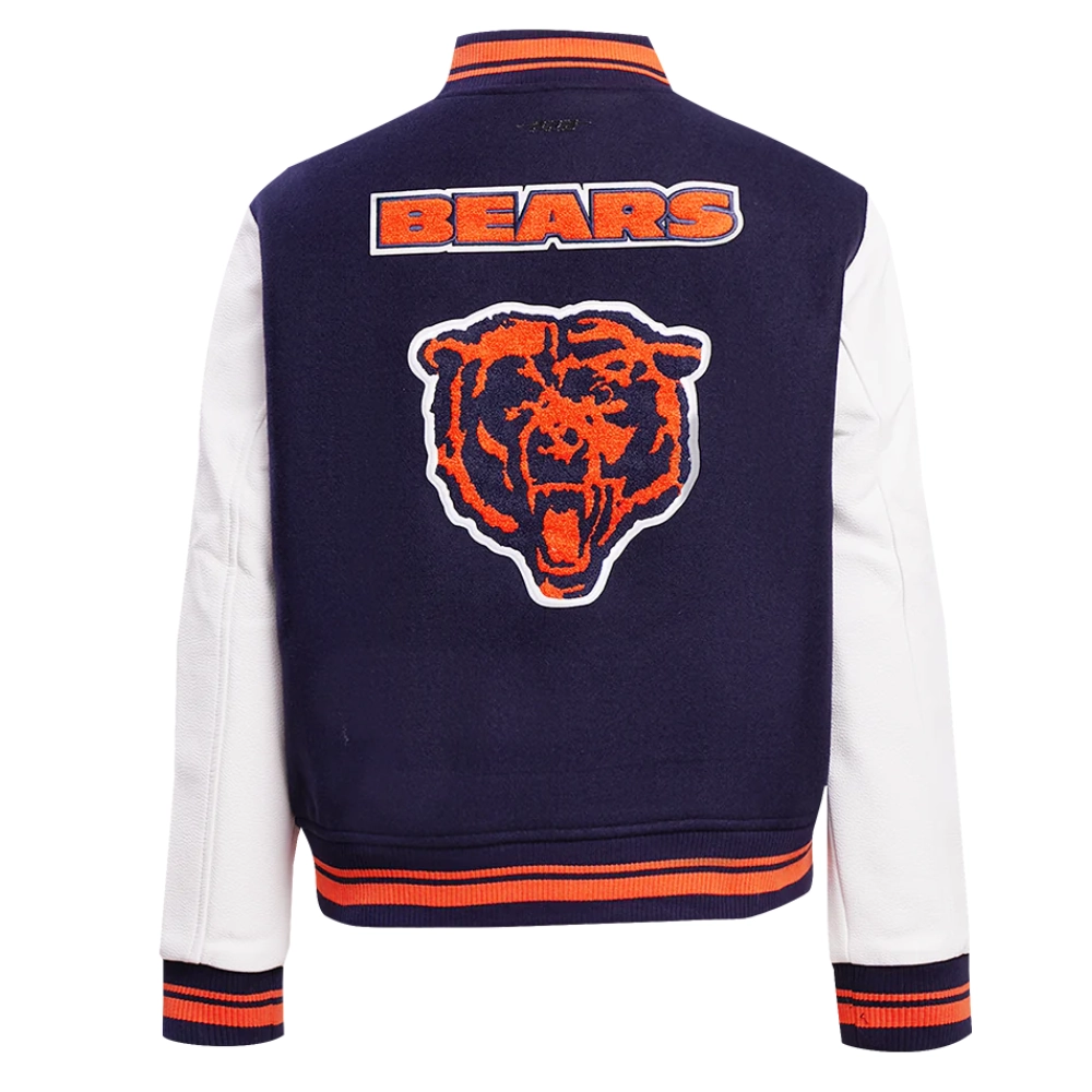 Chicago Bears Retro Classic Navy Blue and White Varsity Jacket