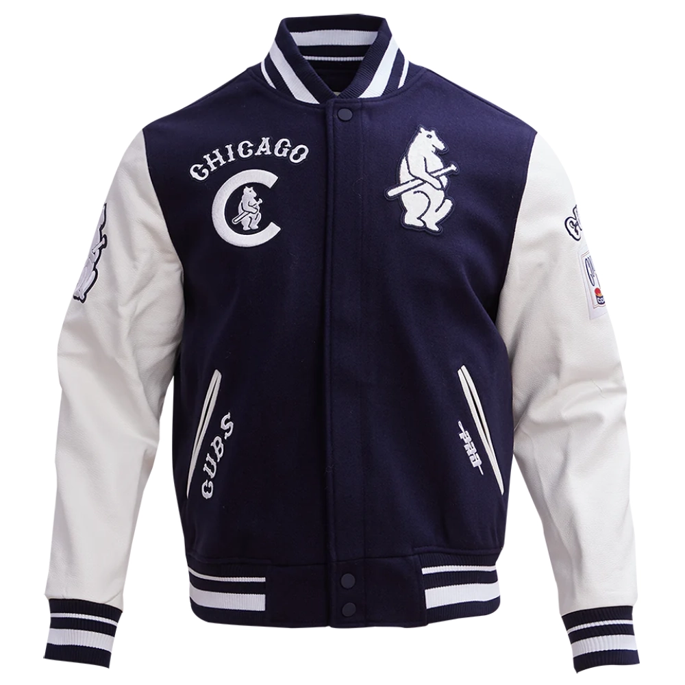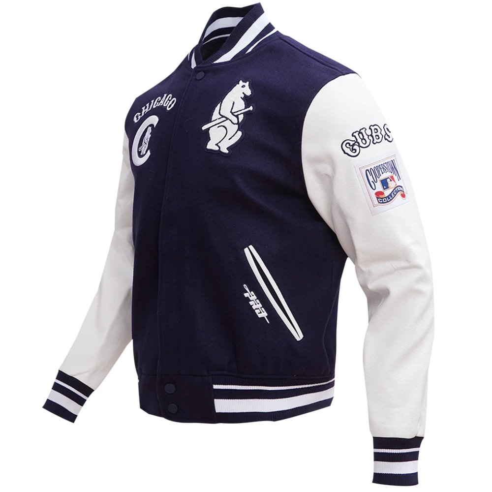 Chicago Cubs Retro Classic Navy/White Rib Wool & Leather Varsity Jacket
