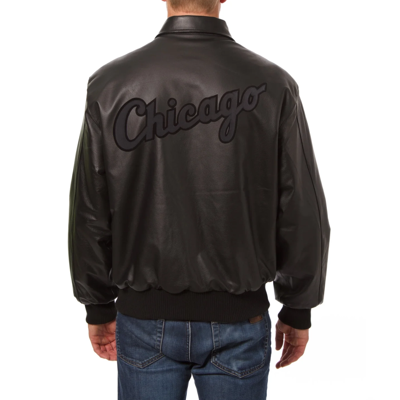 Chicago White Sox Shirt Collar Full Leather Black Bomber Varsity Jacket