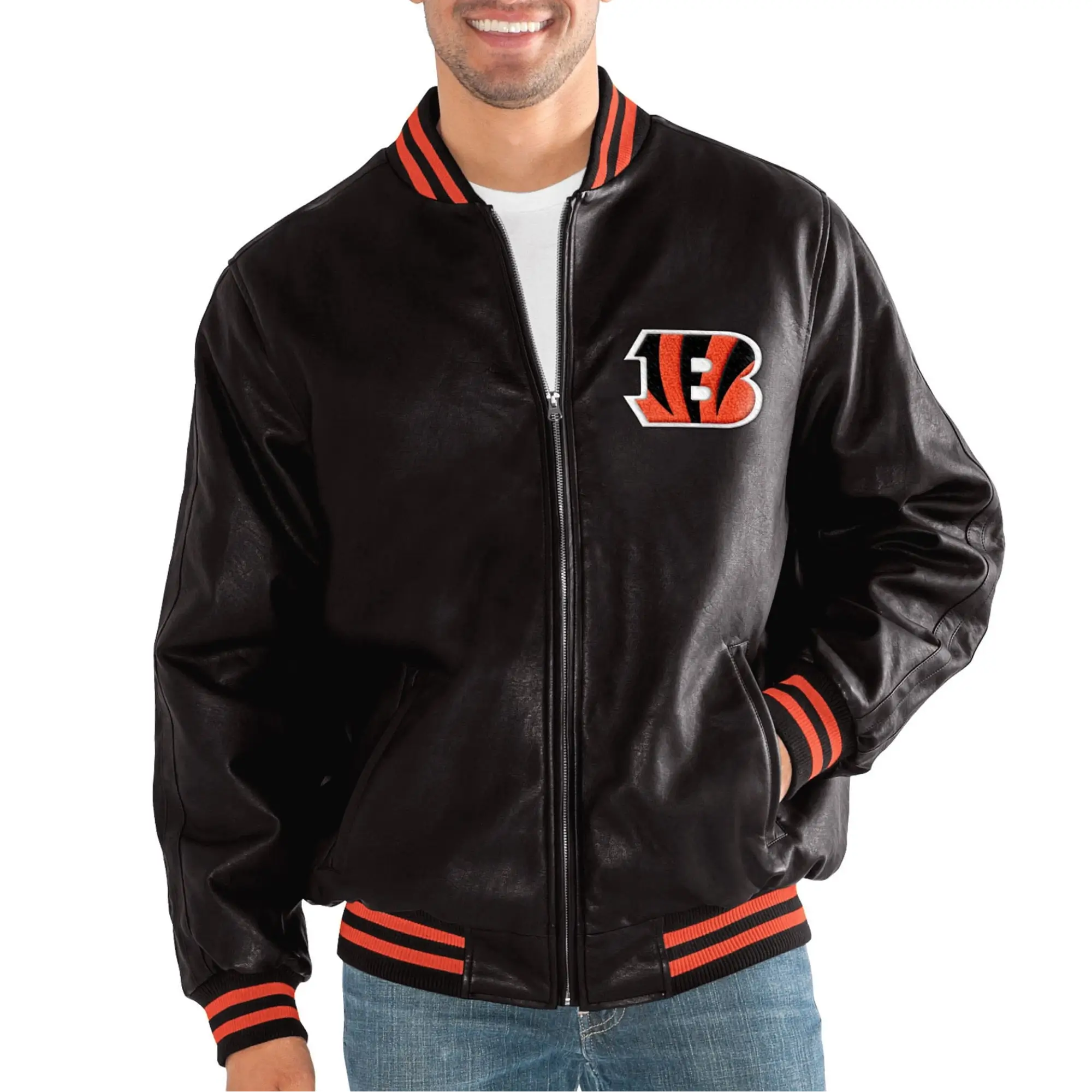 Cincinnati Bengals Black Stiff Arm Pleather Varsity Jacket