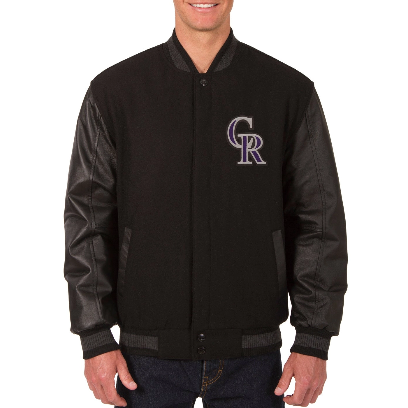 Colorado Rockies One Color Black Wool & Leather Varsity Jacket