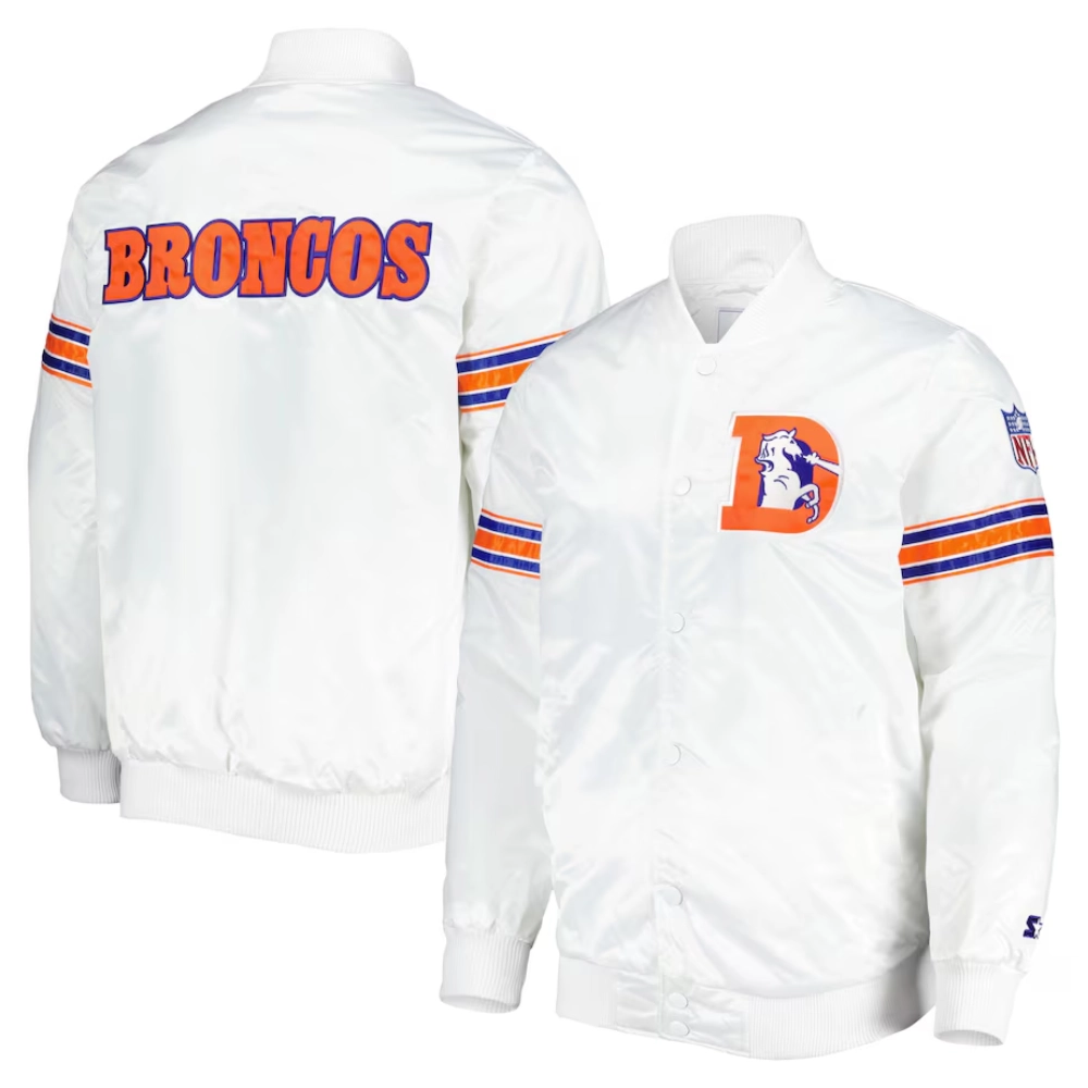 Denver Broncos Power Forward White Varsity Jacket