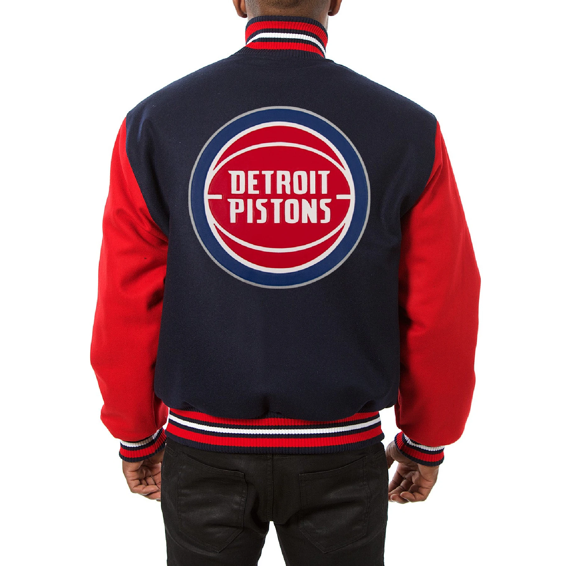 Detroit Pistons Navy Blue Two Tone Wool Varsity Jacket