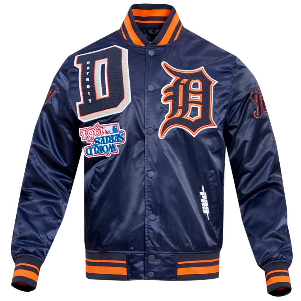 Detroit Tigers Mashup Full-Snap Satin Varsity Navy Jacket