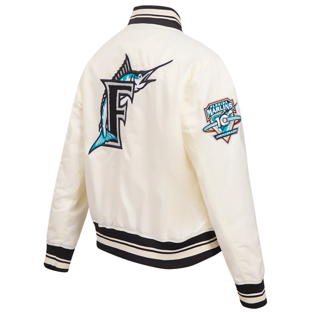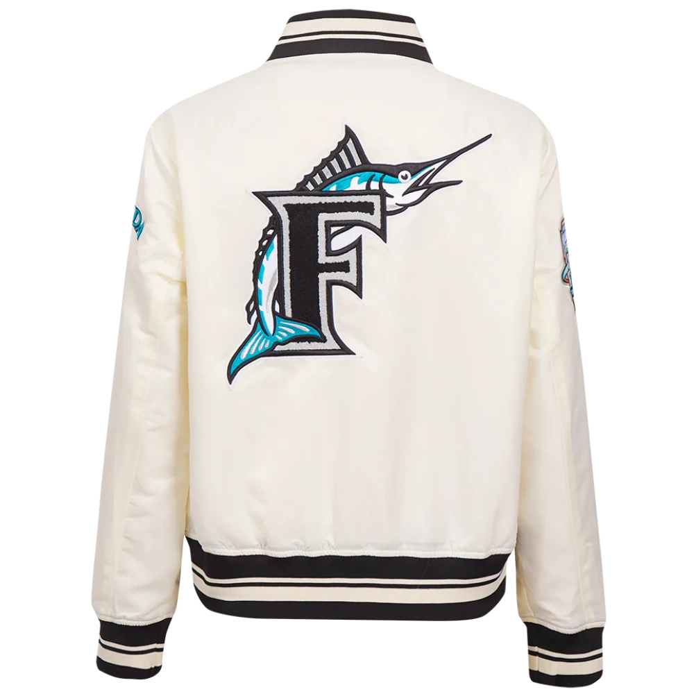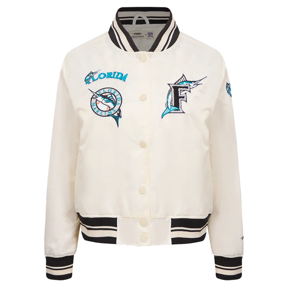 Florida Marlins Retro Classic Women’s Full-Snap Satin Varsity Cream Jacket