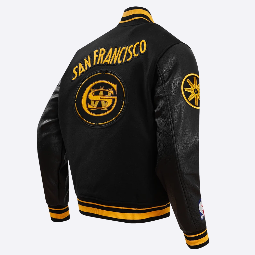 Golden State Warriors City Edition Black Wool & Leather Varsity Jacket