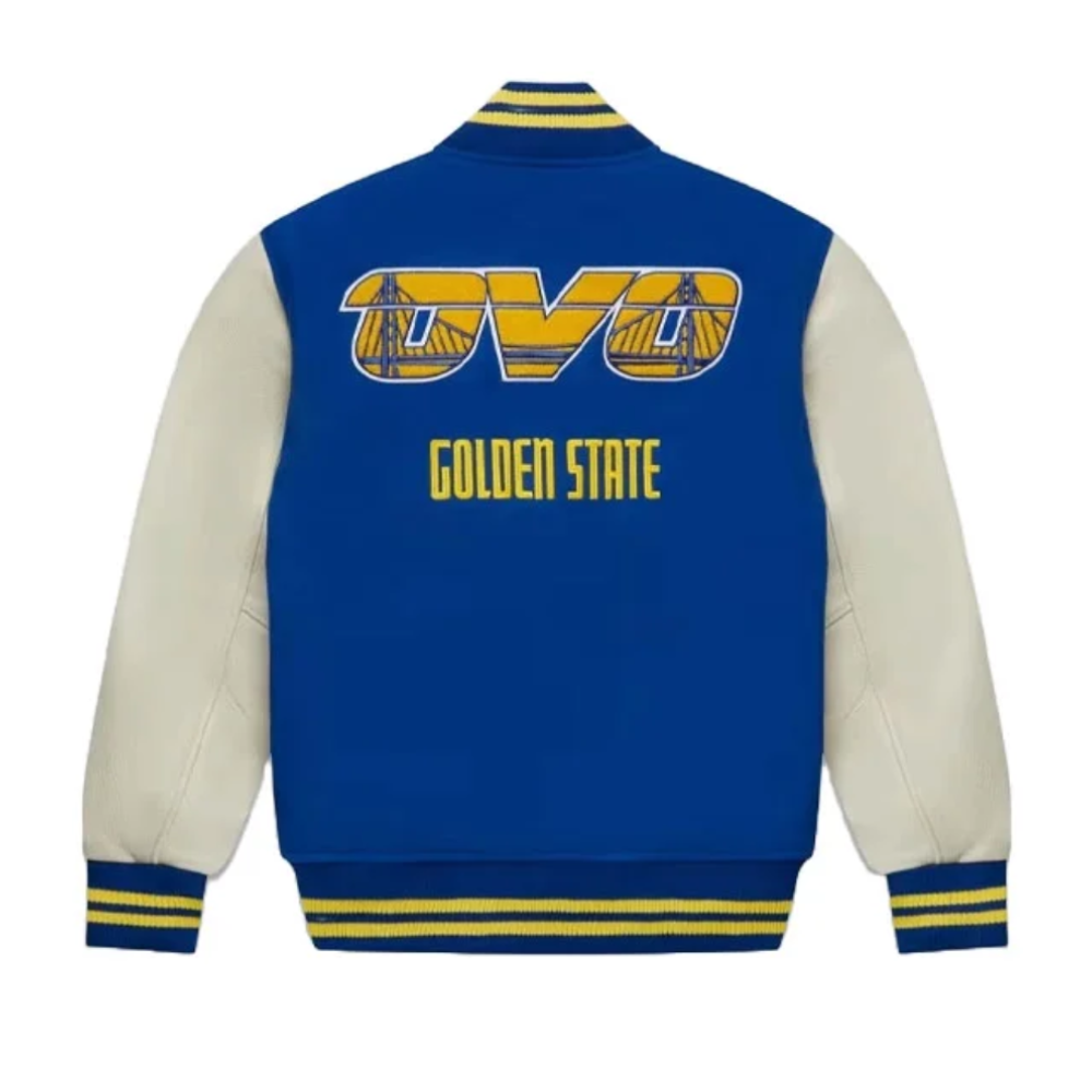 Golden State Warriors OVO X Wool & Leather Blue and White Varsity Jacket