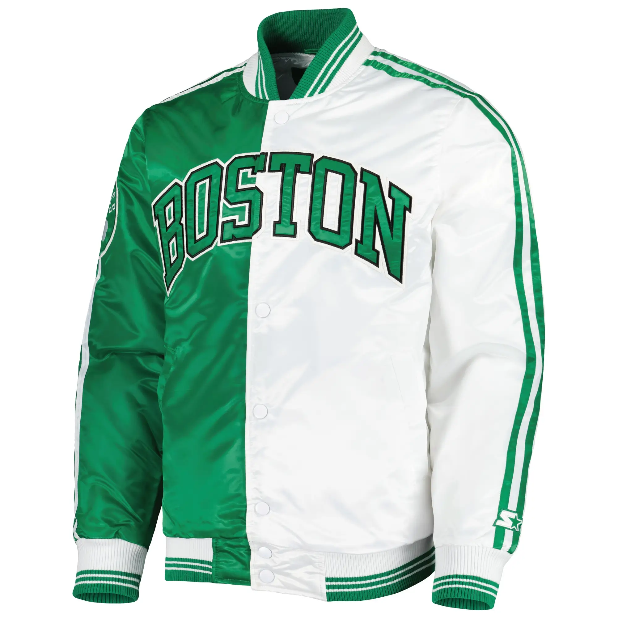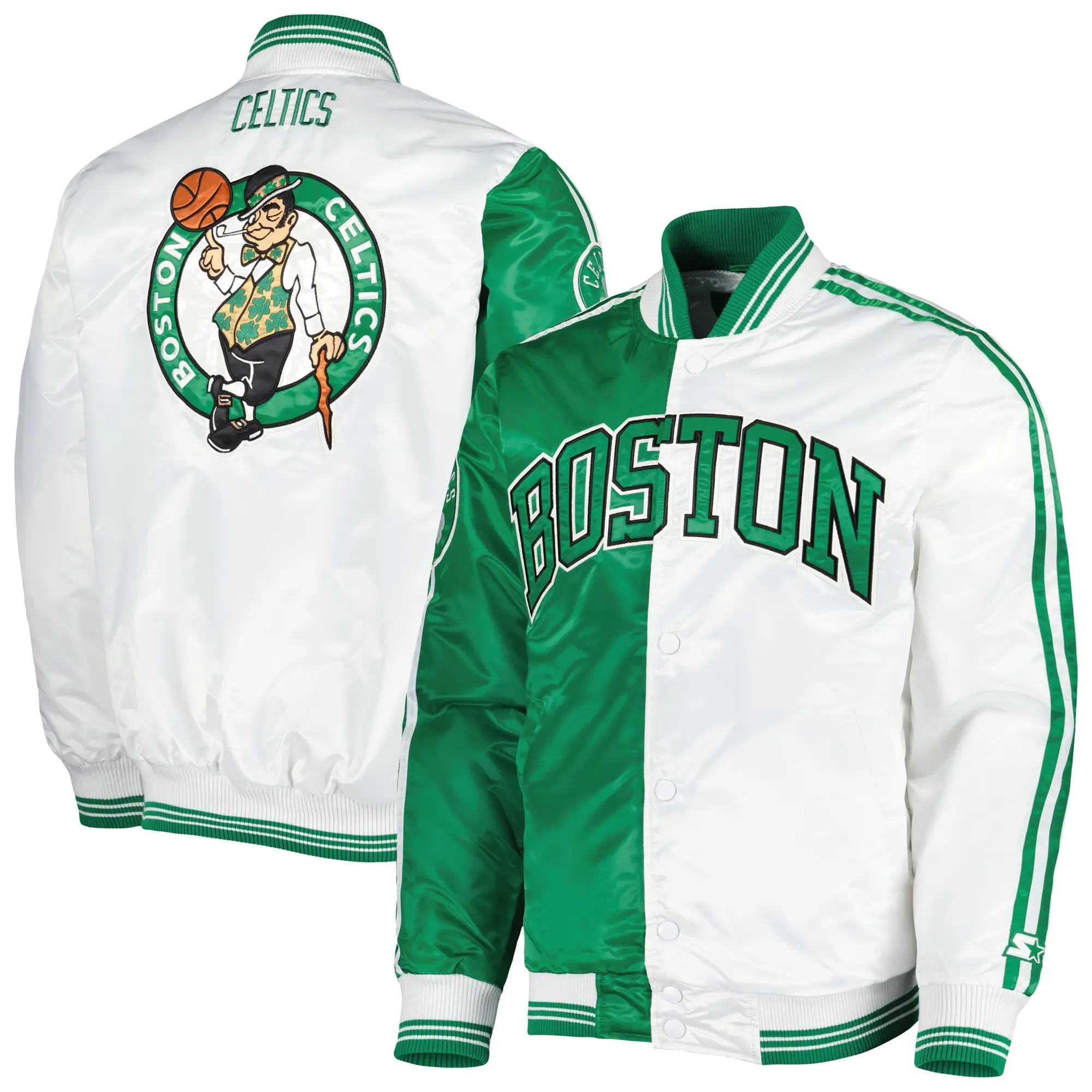 Green and White Boston Celtics Fast Break Varsity Jacket