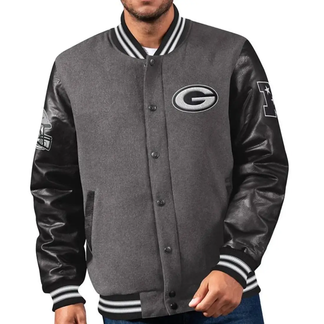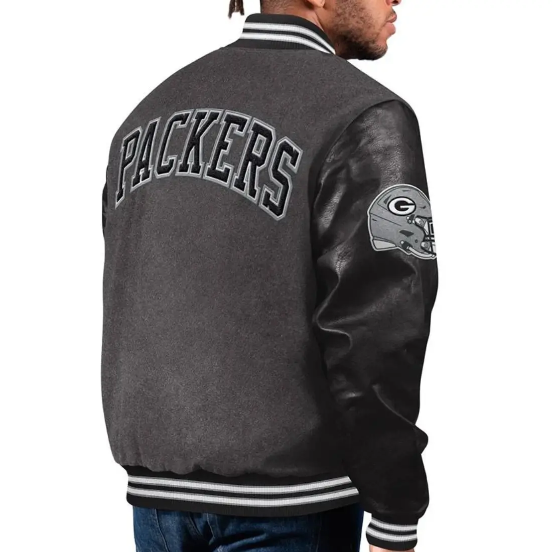 Green Bay Packers Bomber Wool Varsity Charcoal Gray Jacket