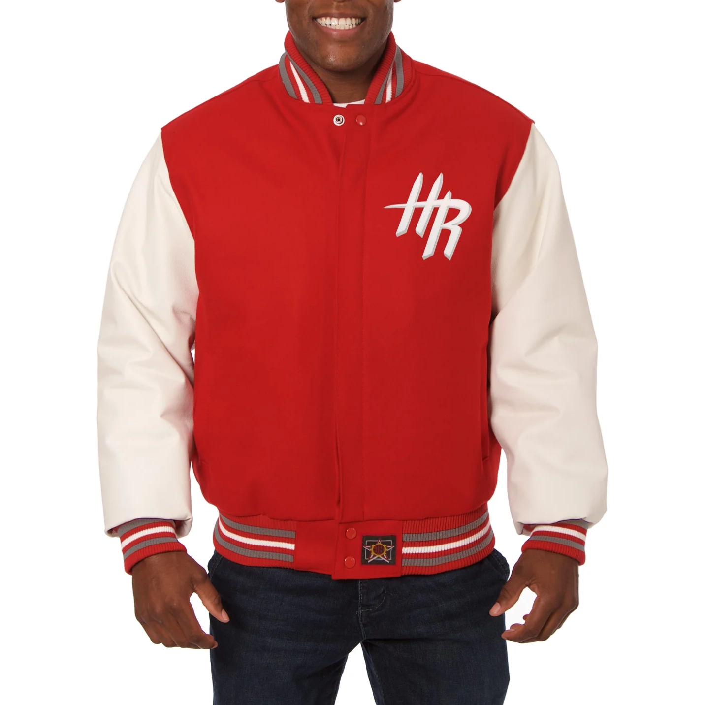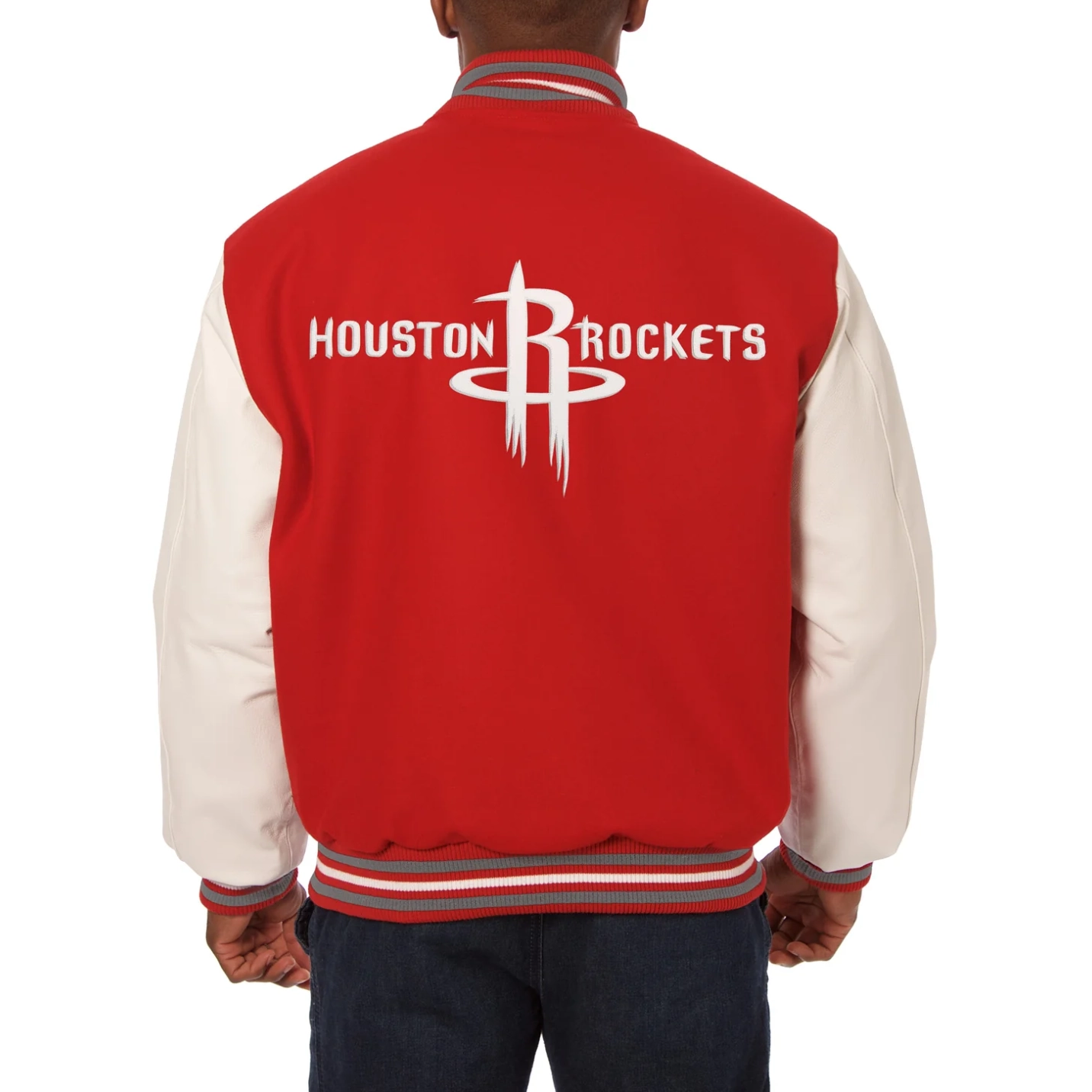 Houston Rockets Domestic Two Tone Wool & Leather Jacket Red and Cream