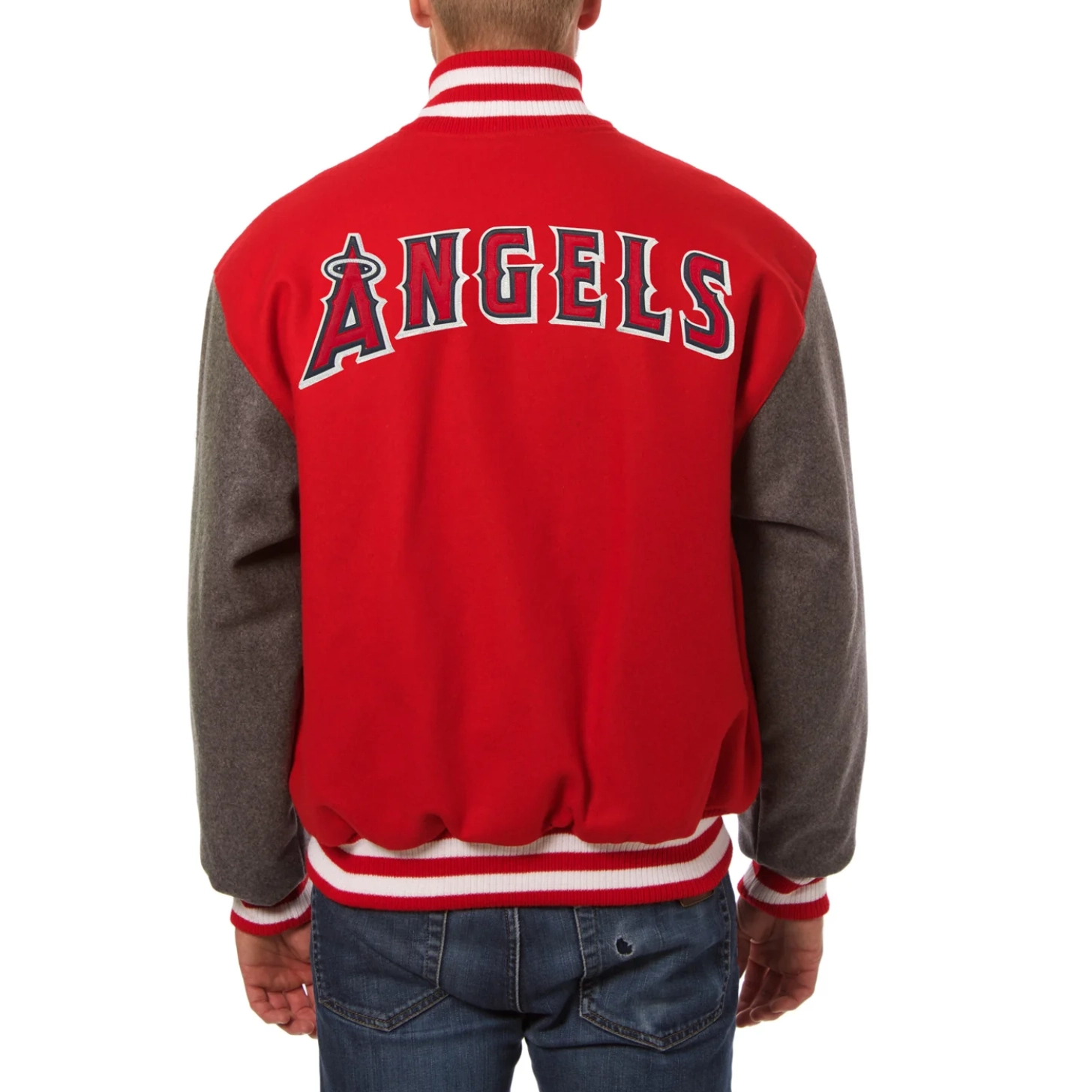 Los Angeles Angels Two Tone Handcrafted Leather Logo Wool Varsity Red/Gray Jacket