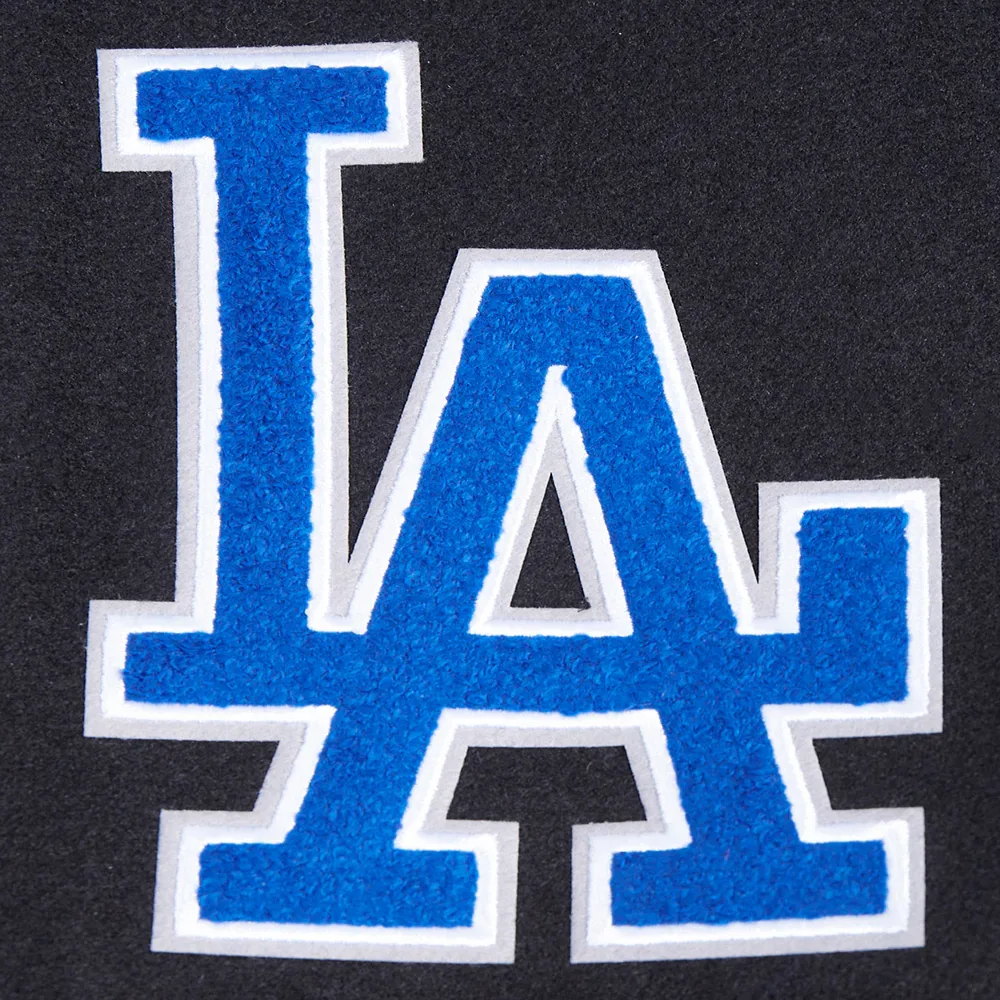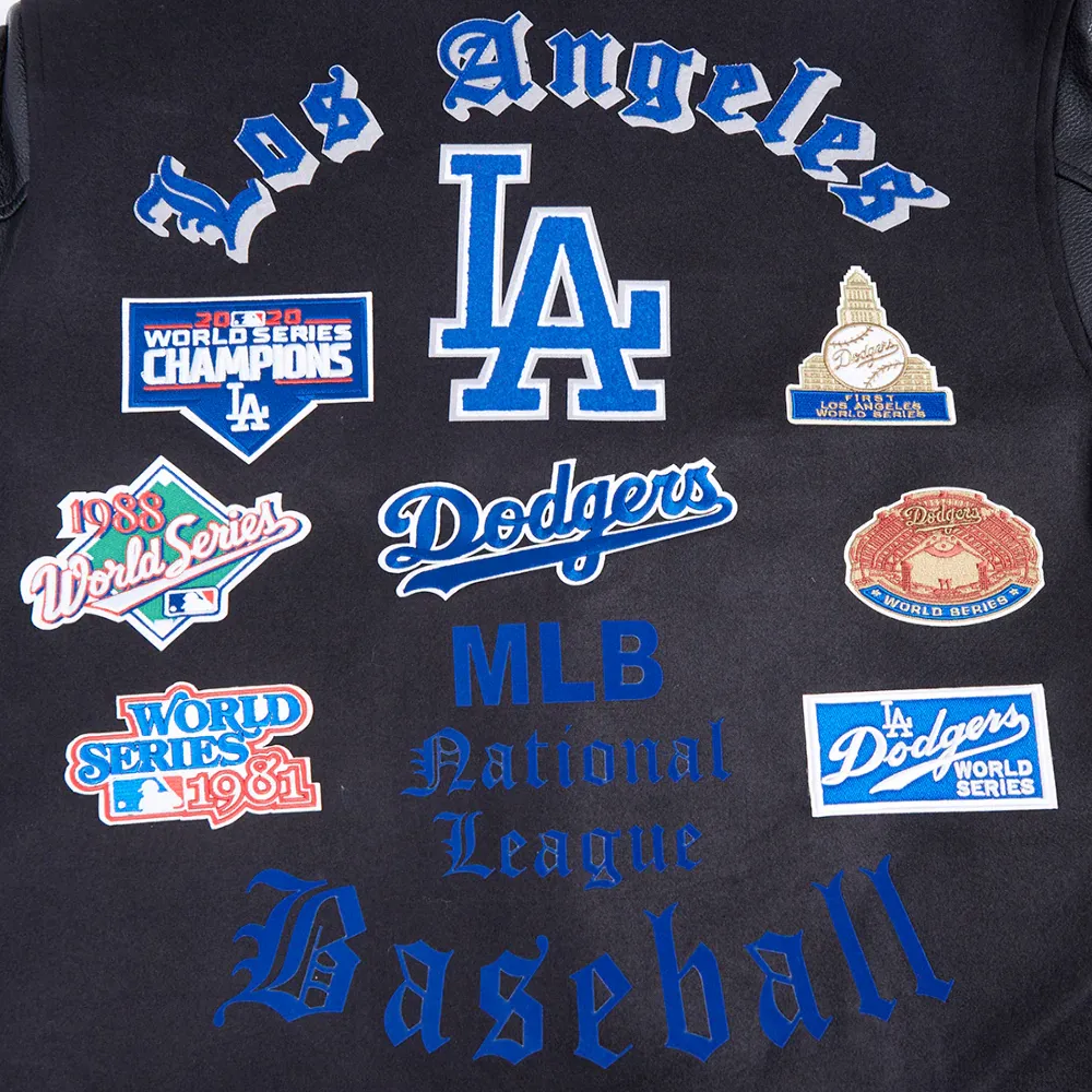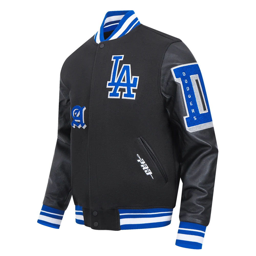 Los Angeles Dodgers Old English Black Wool & Leather Varsity Jacket