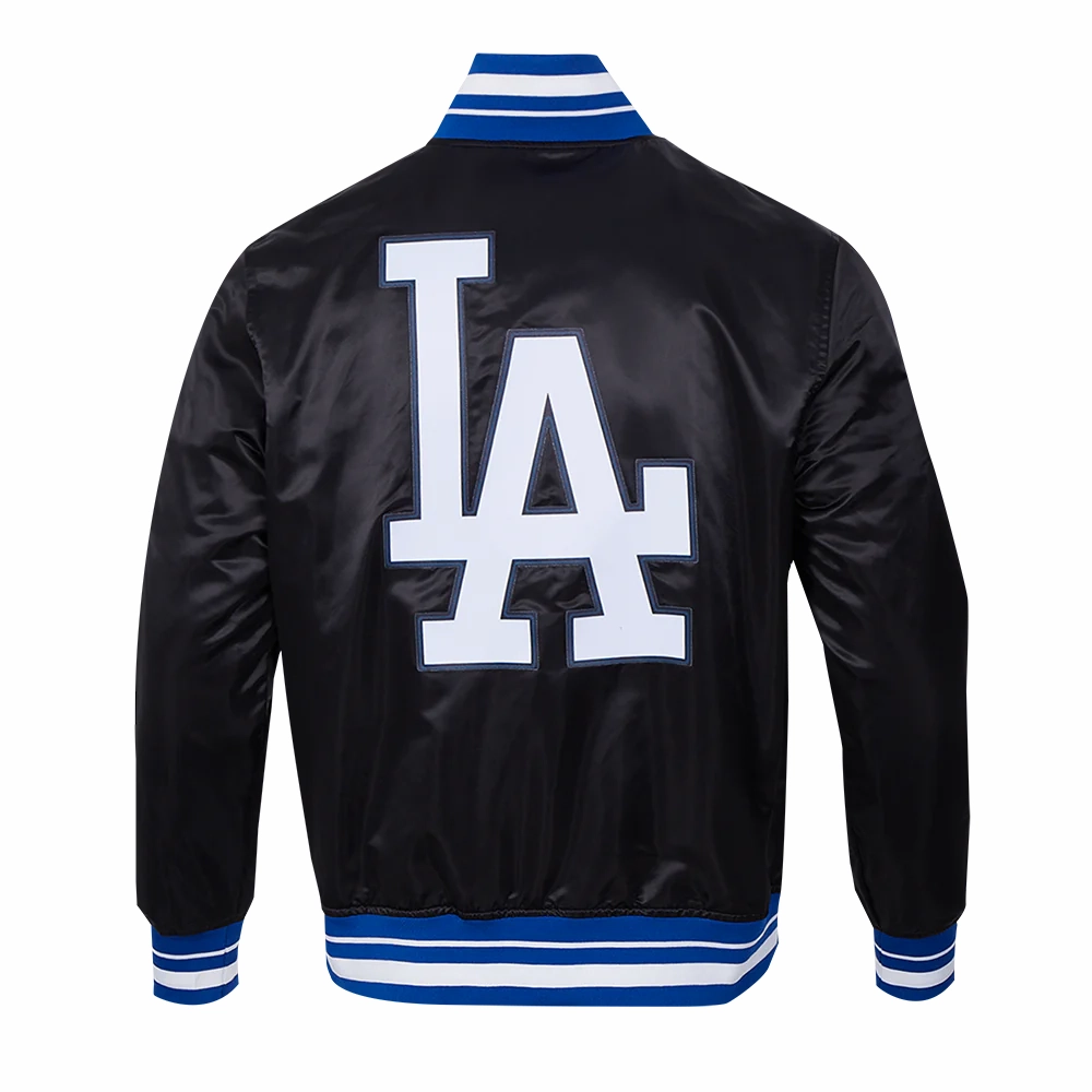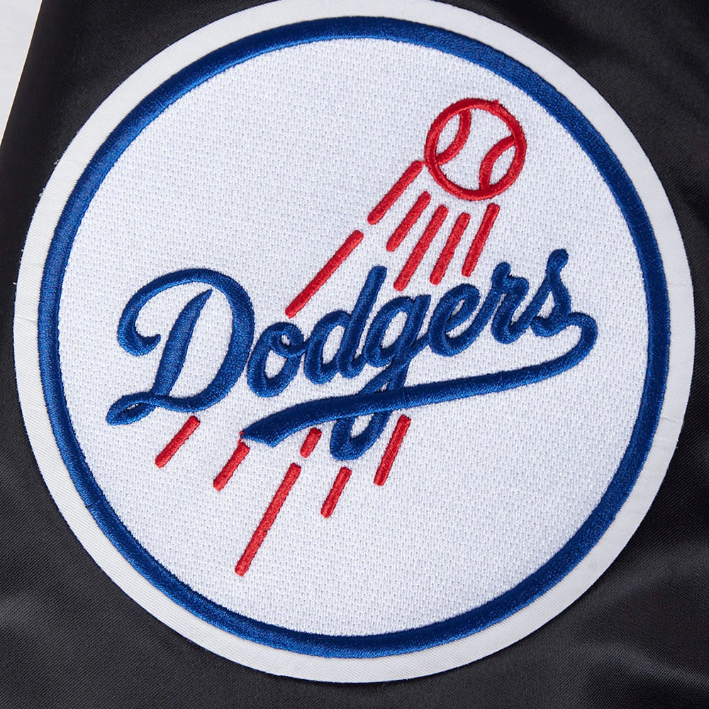 Los Angeles Dodgers Script Tail Satin Varsity Jacket – Black