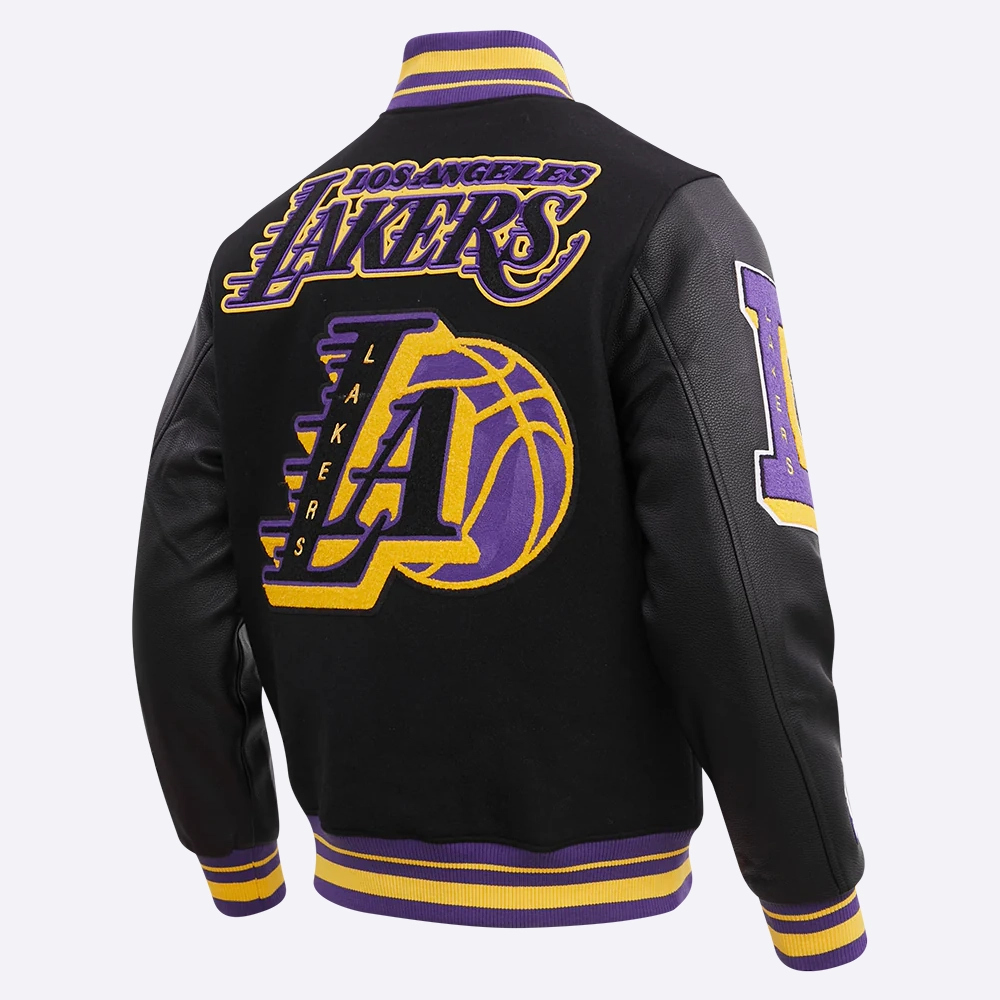 Los Angeles Lakers Mashup Wool & Leather Black Varsity Jacket