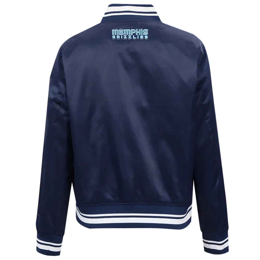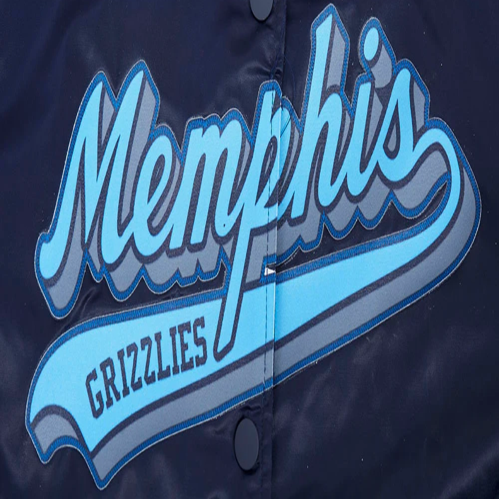 Memphis Grizzlies Script Tail Women’s Full-Snap Navy Satin Varsity Jacket