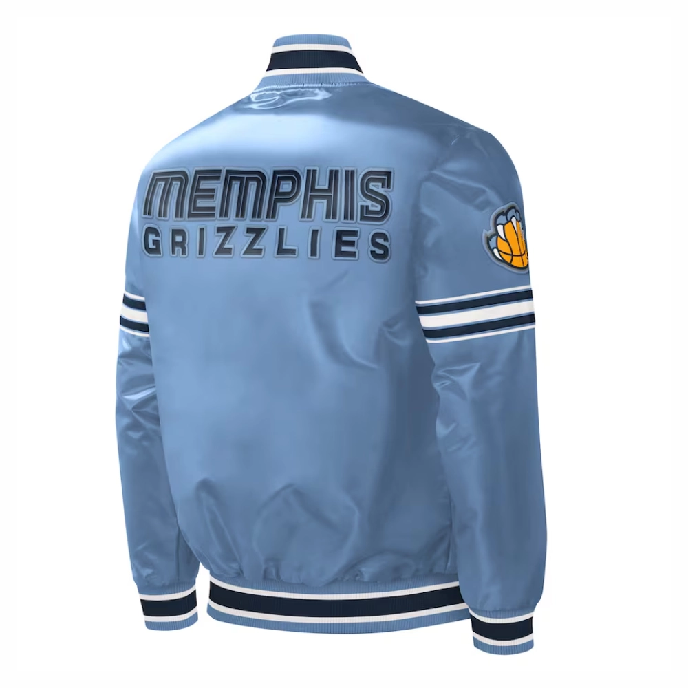 Memphis Grizzlies Slider Full-Snap Blue Satin Varsity Jacket