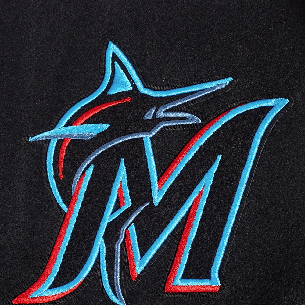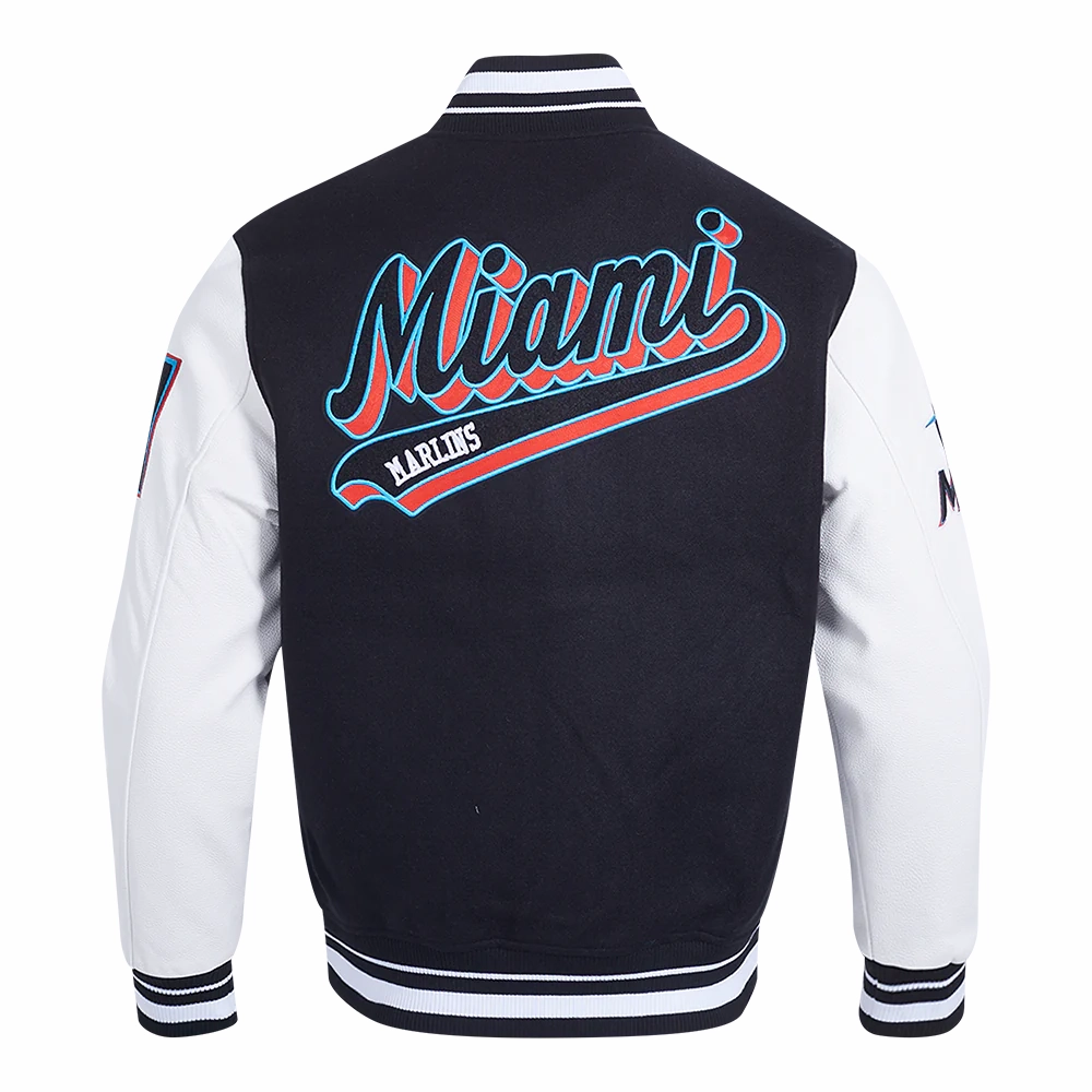 Miami Marlins Script Tail Men’s Rib Wool & Leather Varsity Jacket