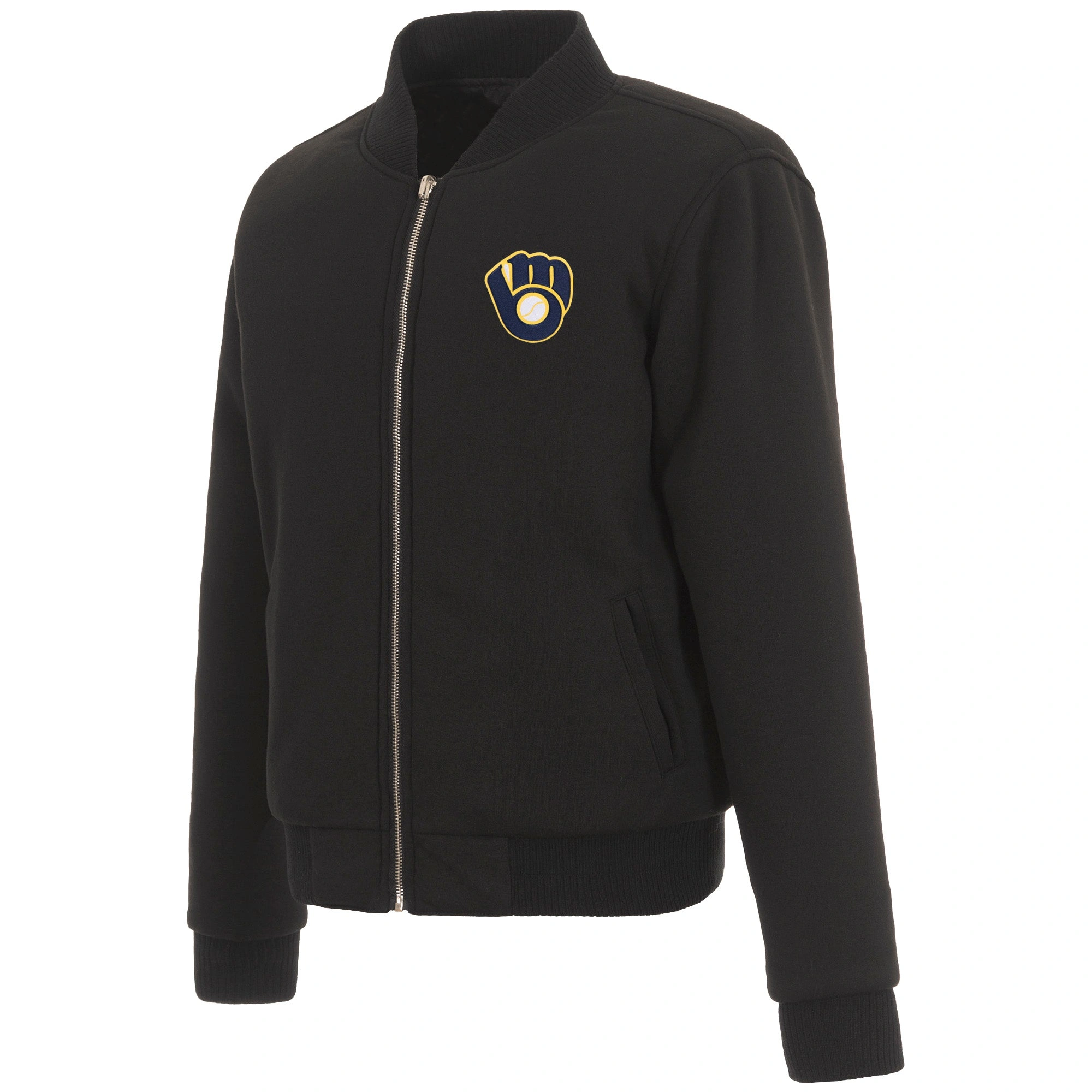 Milwaukee Brewers Full-Zip Black Fleece Varsity Jacket