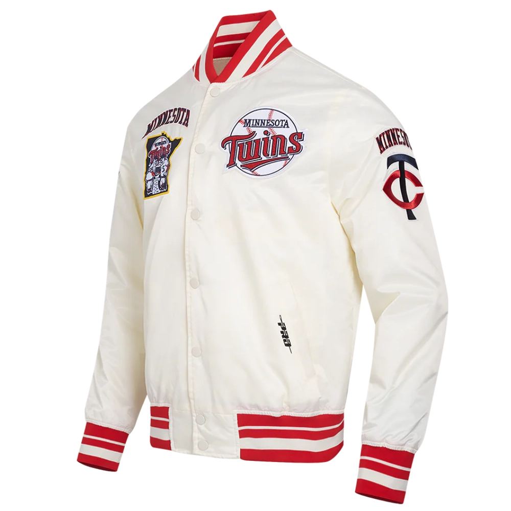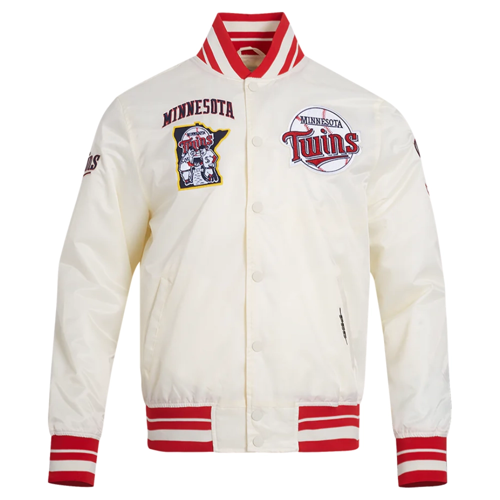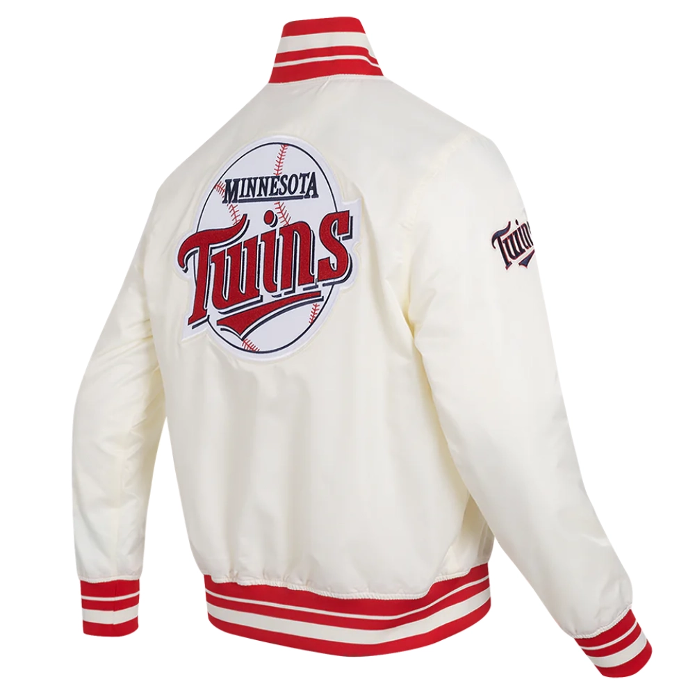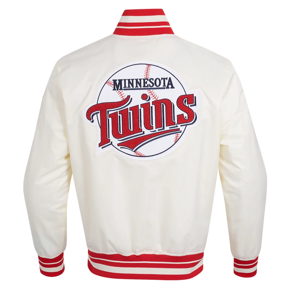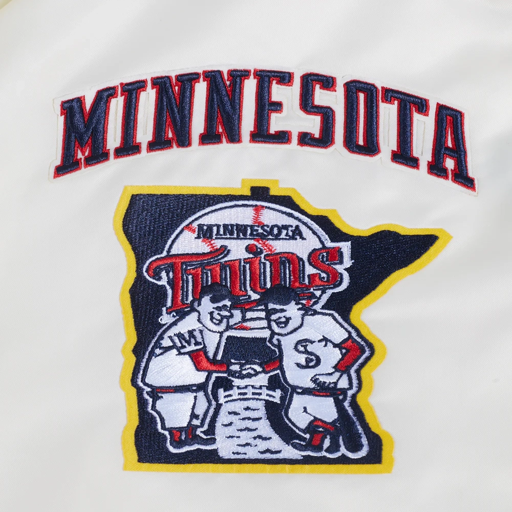 Minnesota Twins Retro Classic Full-Snap Satin Varsity Cream Jacket
