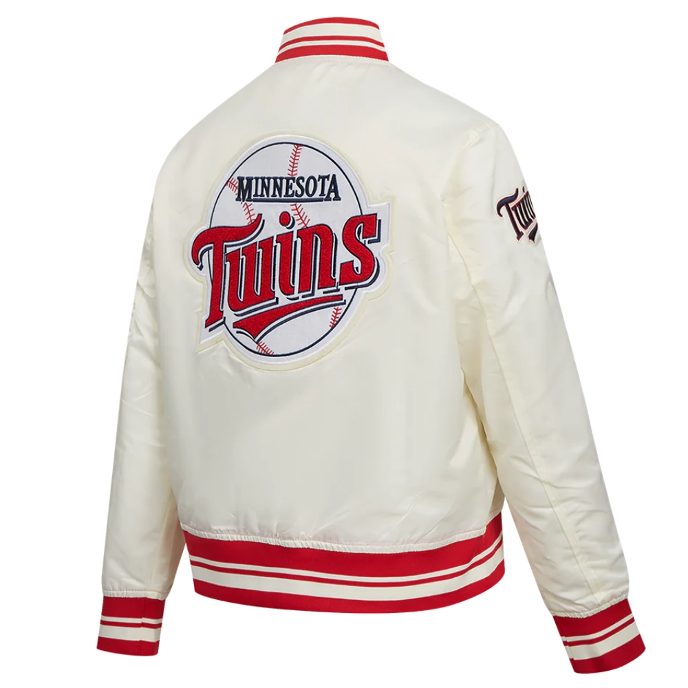 Minnesota Twins Retro Classic Women’s Full-Snap Satin Varsity Cream Jacket