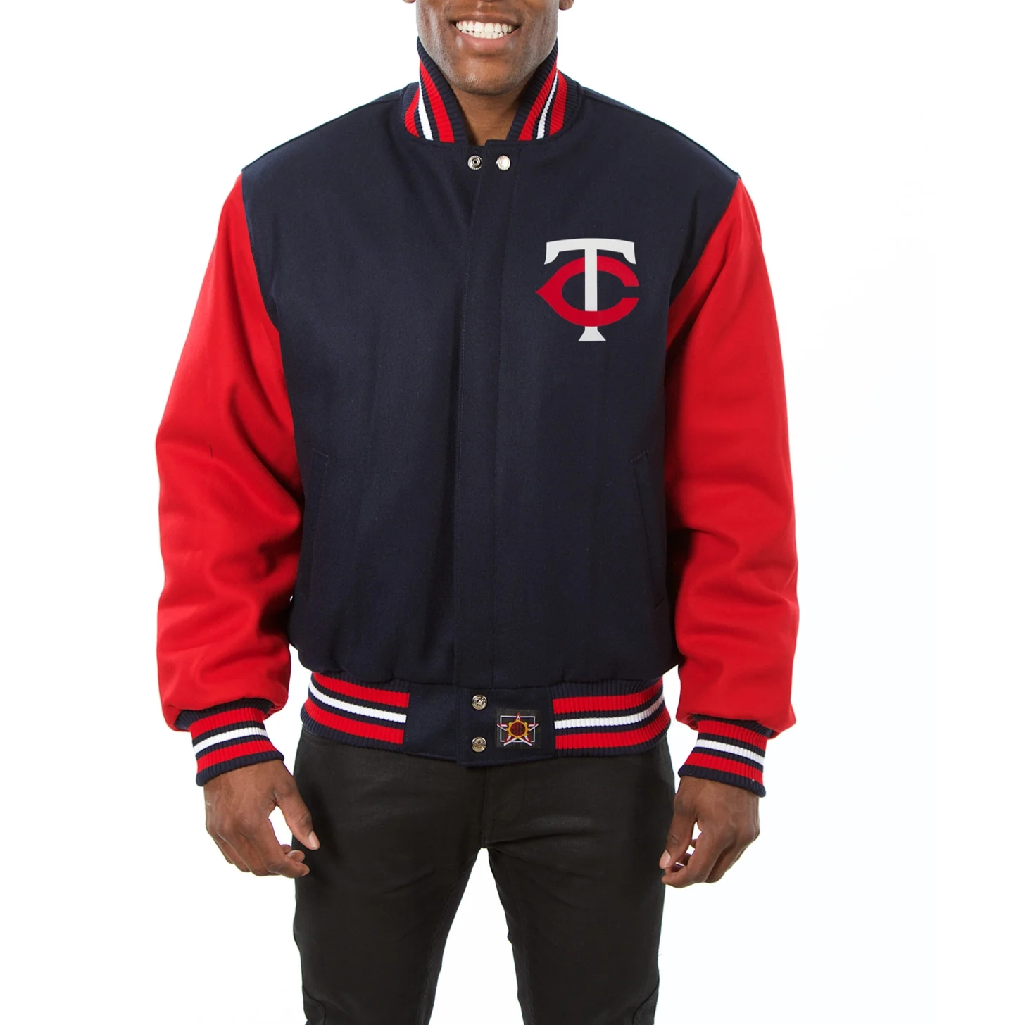 Minnesota Twins Two Tone Handcrafted Logo Navy/Red Wool Varsity Jacket