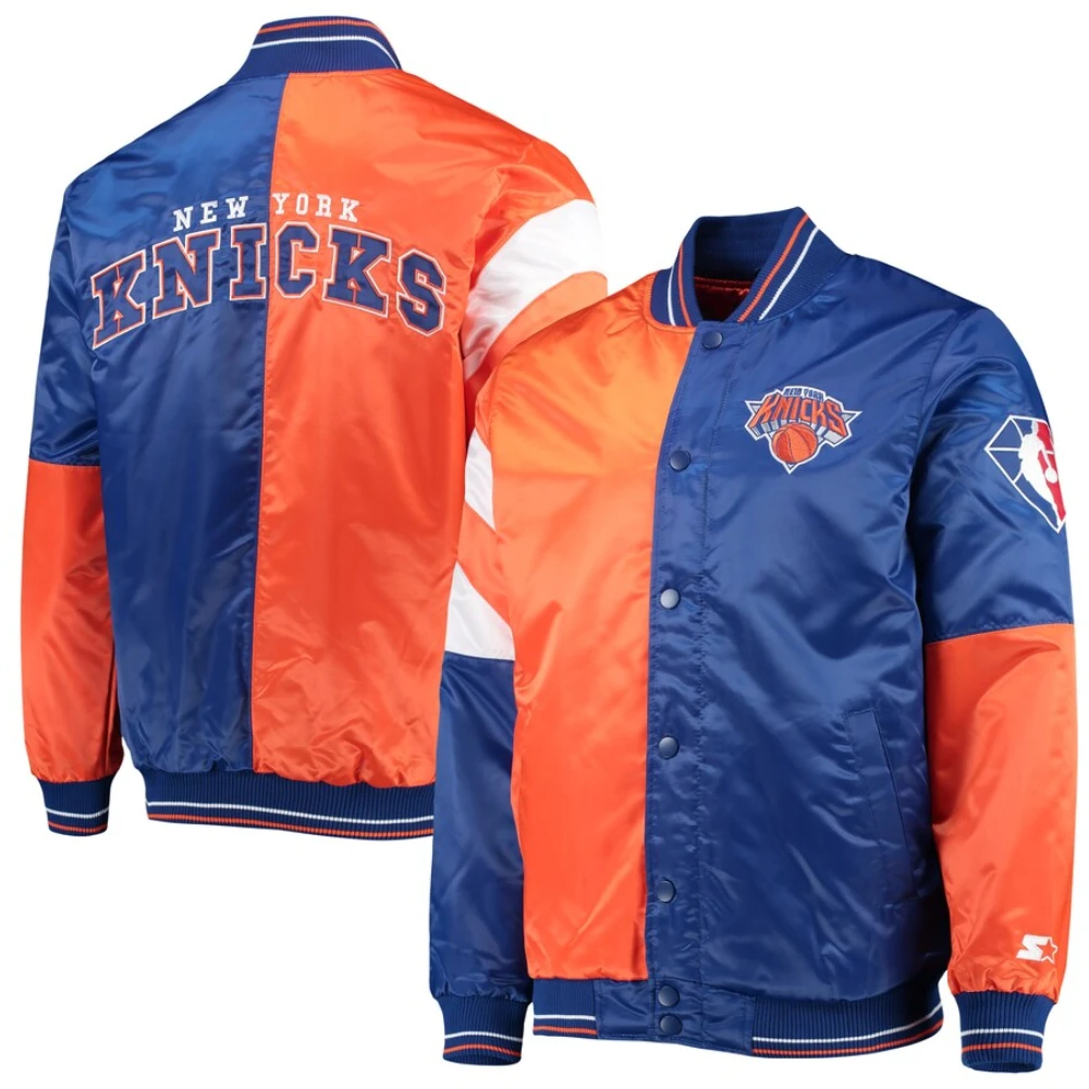 New York Knicks Leader Orange and Blue Varsity Jacket