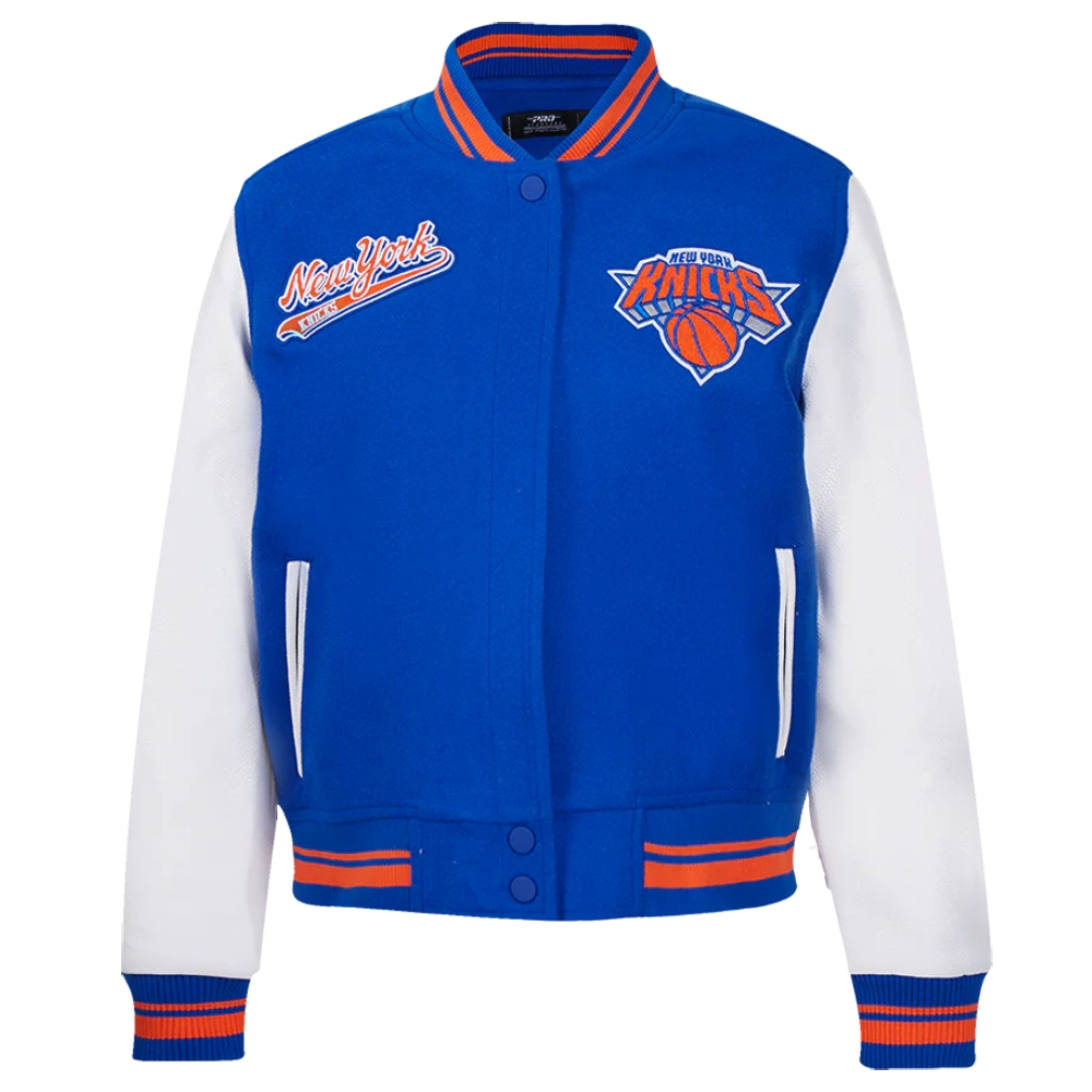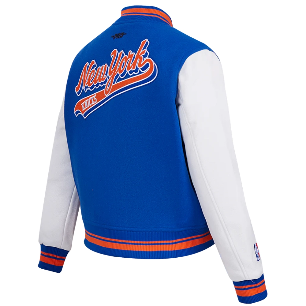 New York Knicks Script Tail Blue Wool Varsity Jacket