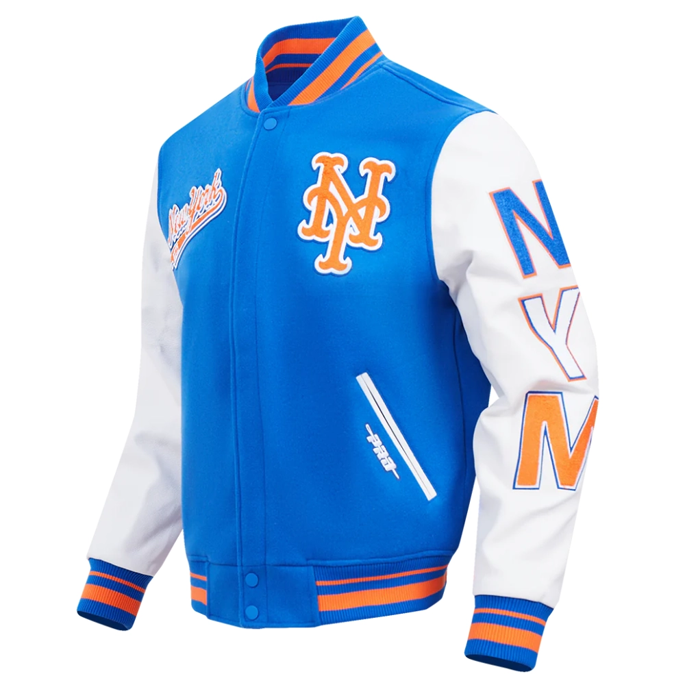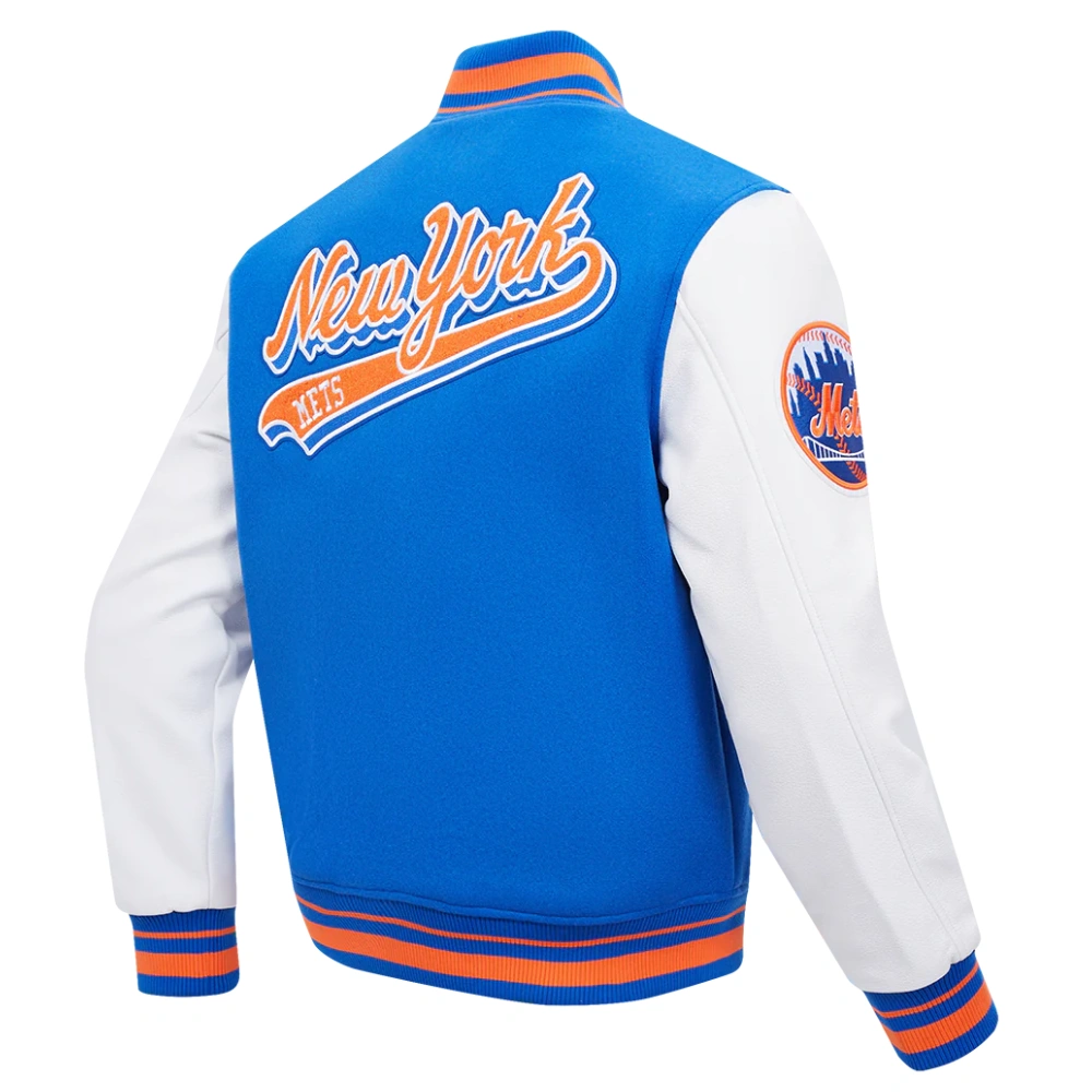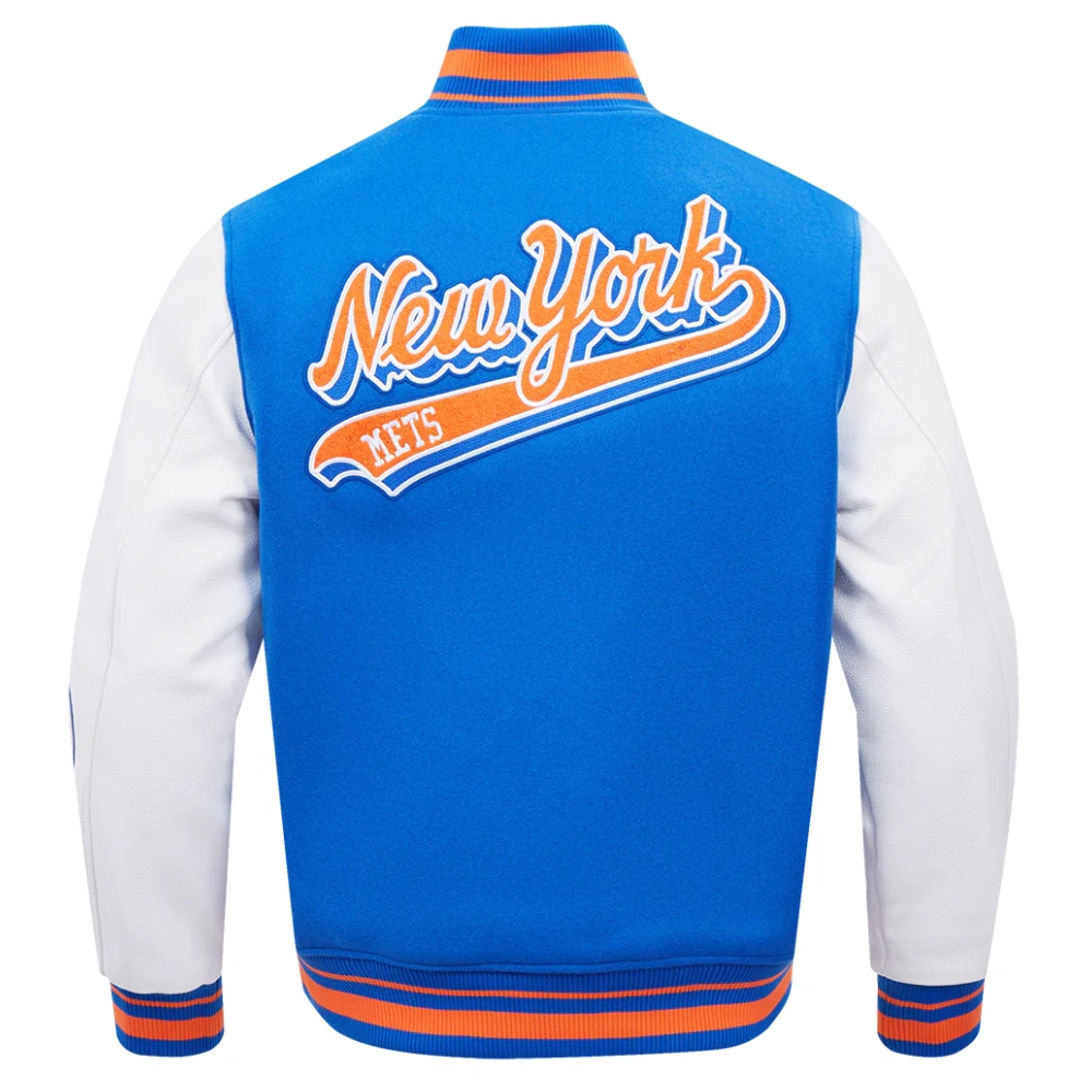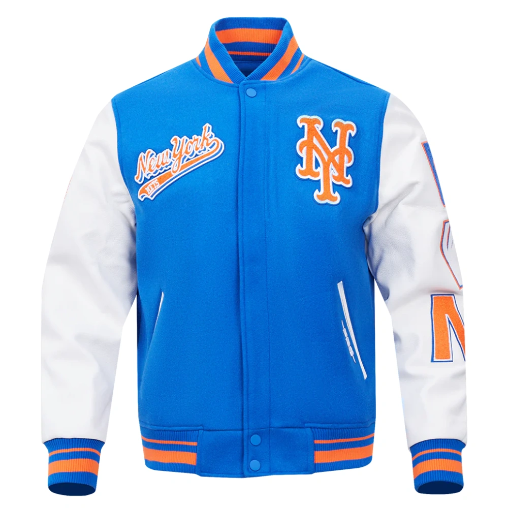 New York Mets Script Tail Wool & Leather Varsity Jacket