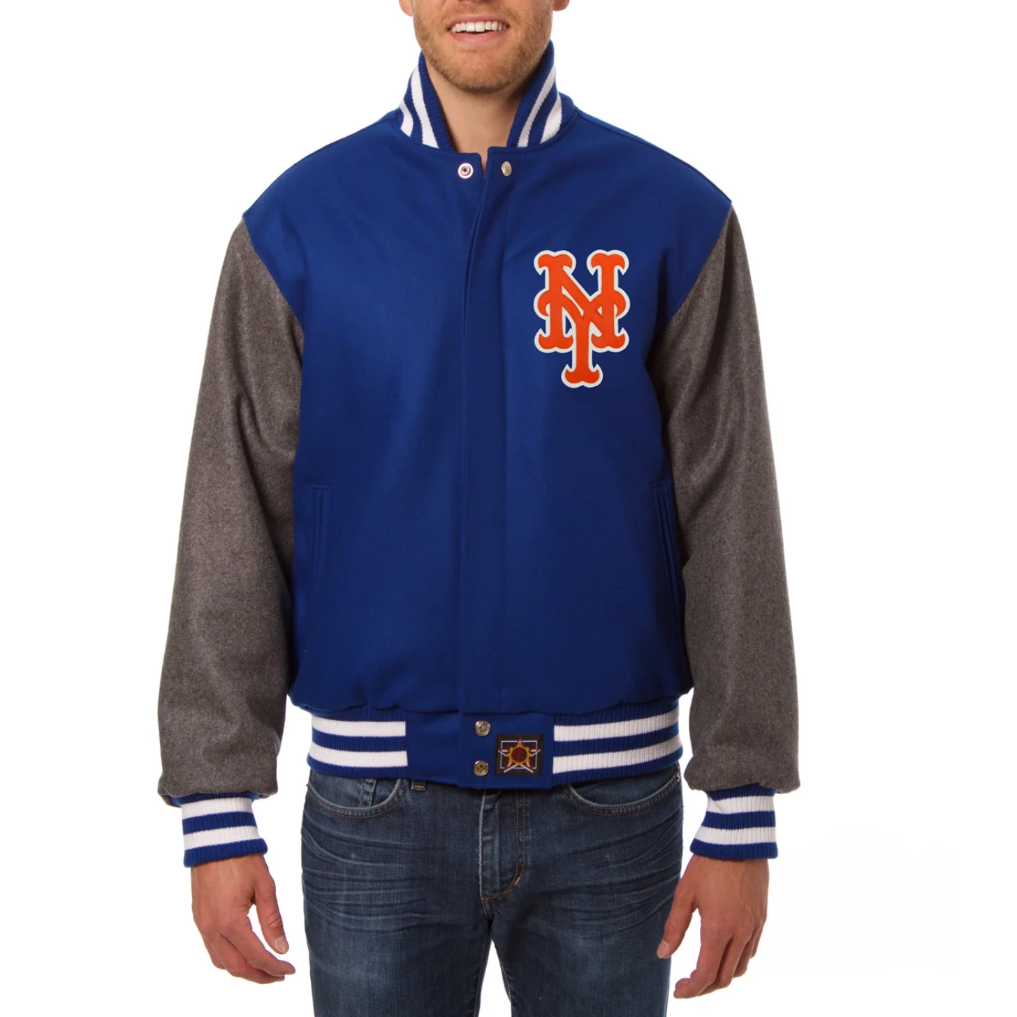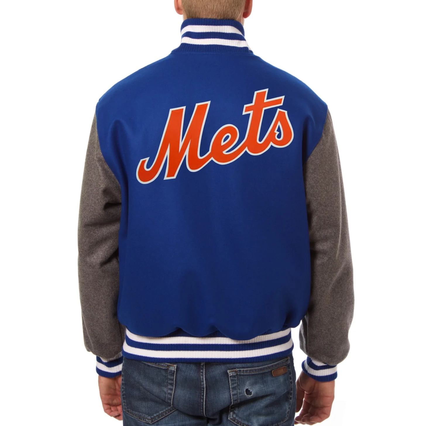 New York Mets Two Tone Handcrafted Logo Wool Varsity Jacket