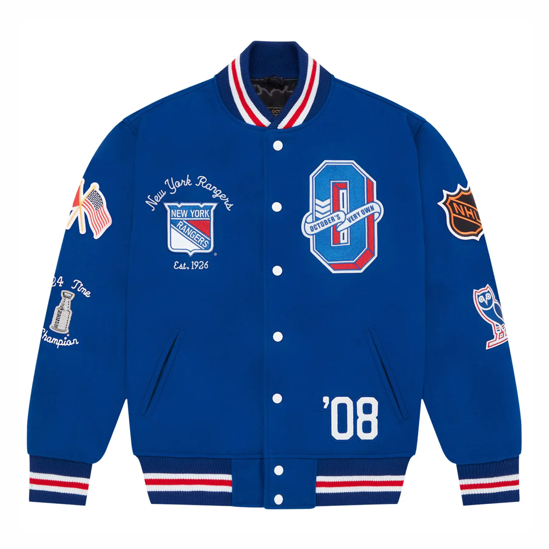 New York Rangers OVO x NHL Blue Varsity Jacket