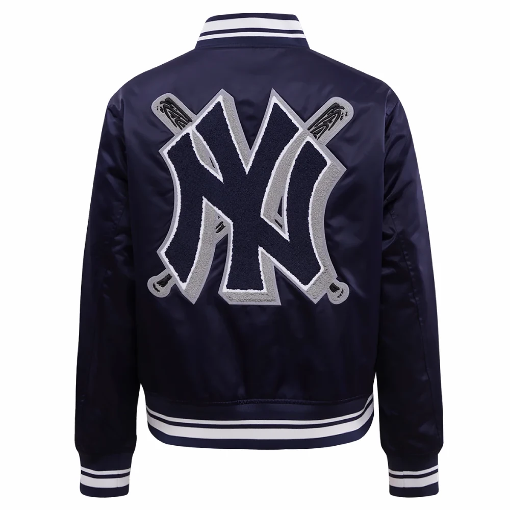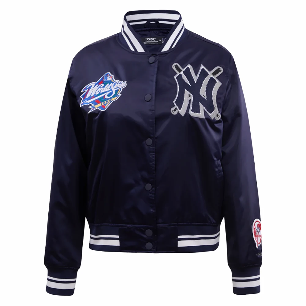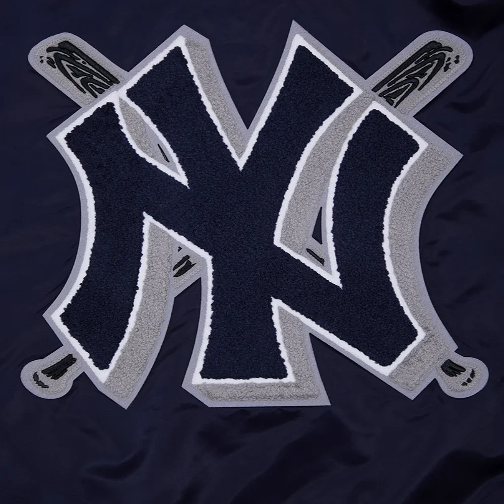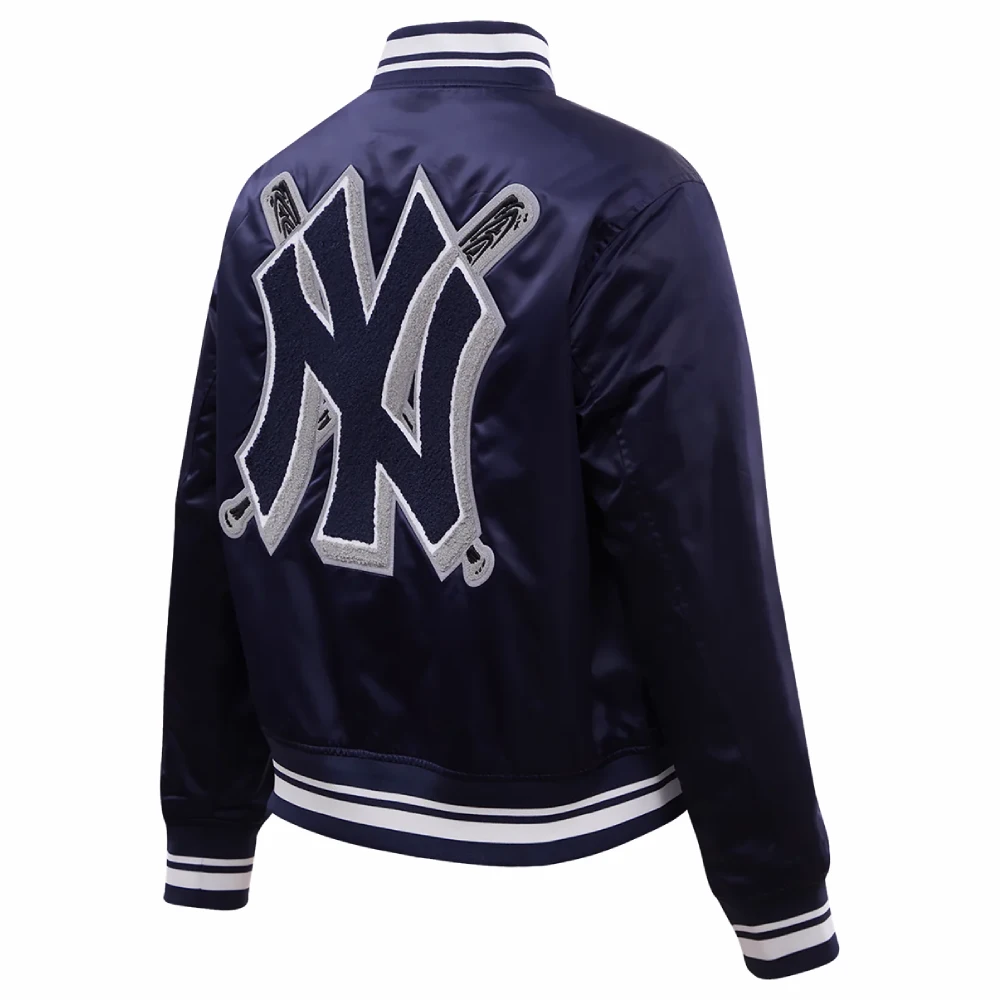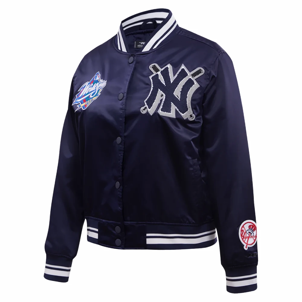 New York Yankees Mashup Women’s Full-Snap Navy Satin Varsity Jacket