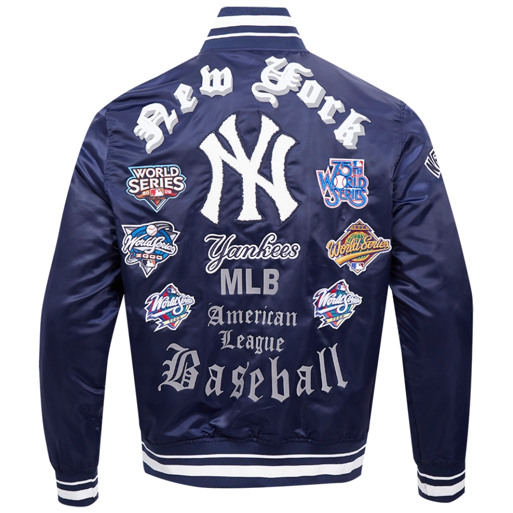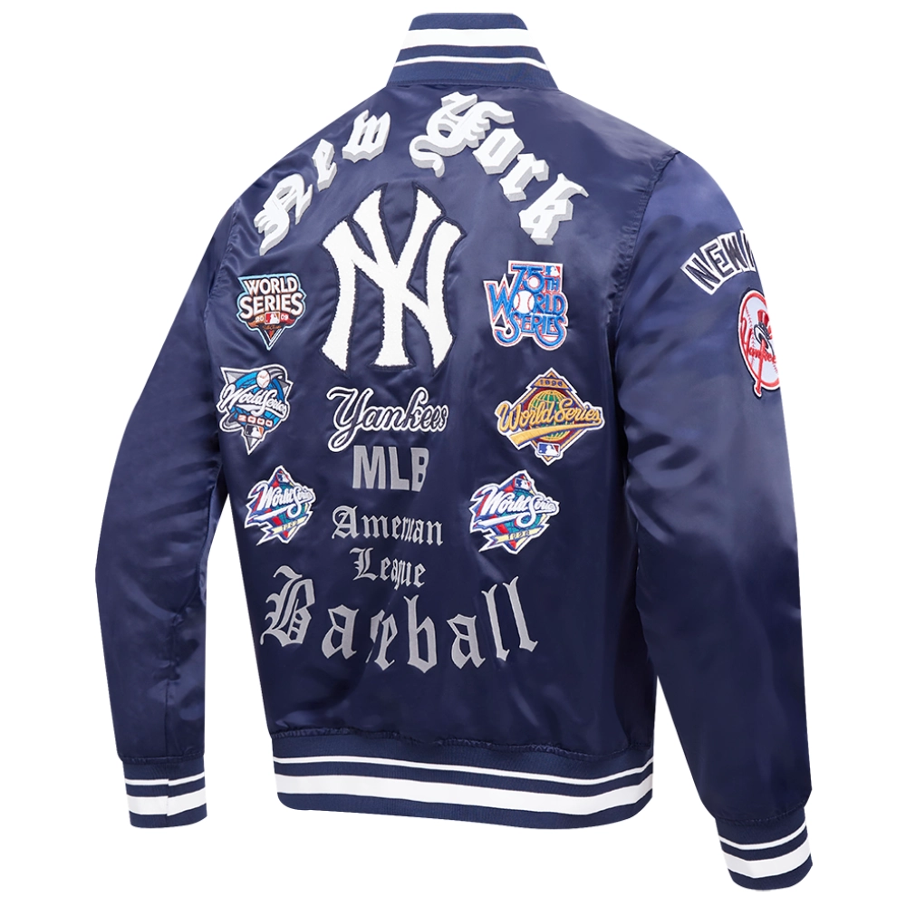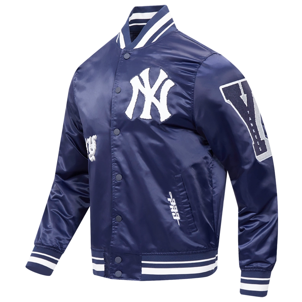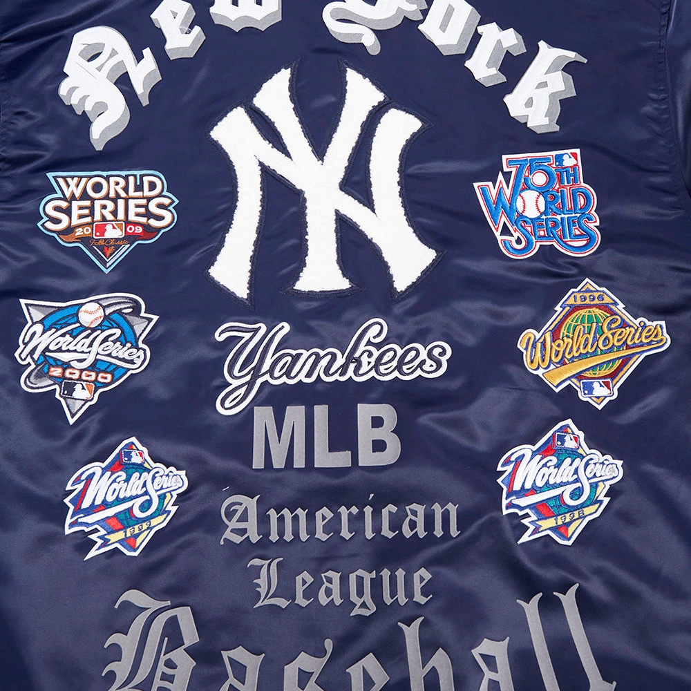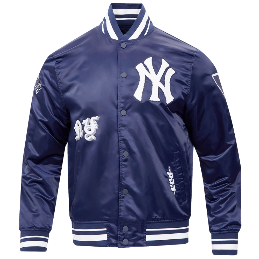 New York Yankees Old English Classic Rib Knitted Satin Varsity Navy Jacket