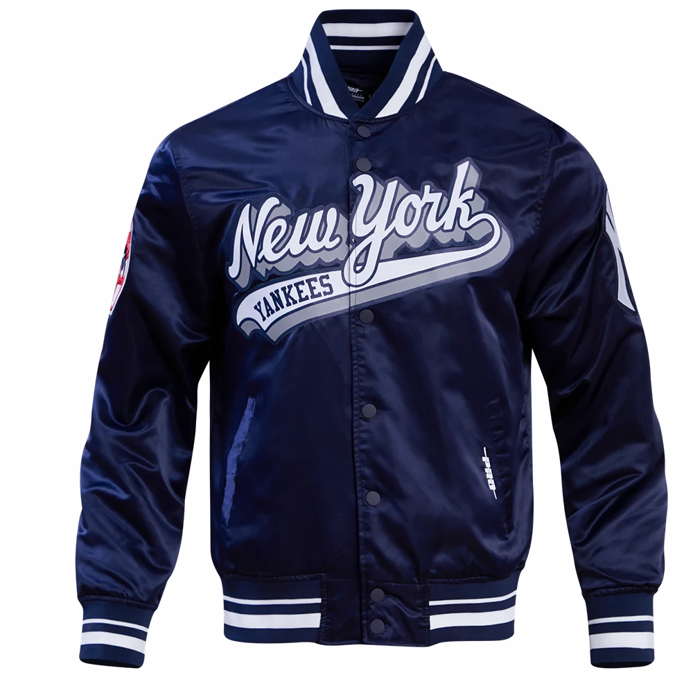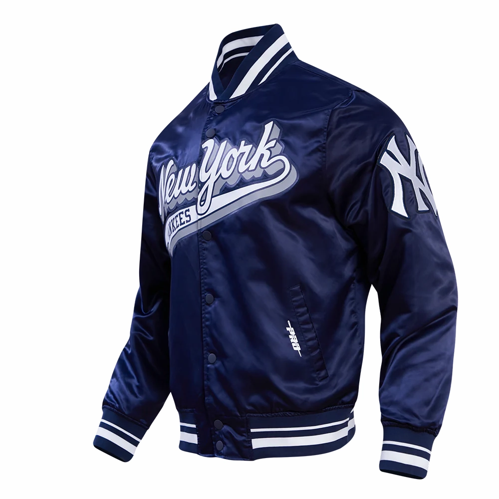 New York Yankees Script Tail Satin Varsity Navy Jacket
