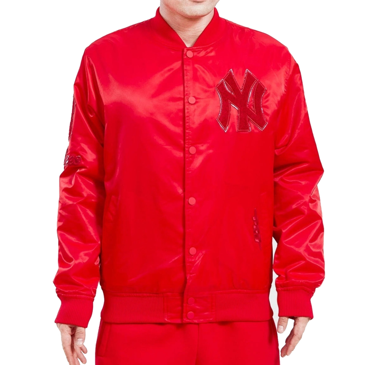 New York Yankees Triple Red Full-Snap Satin Varsity Red Jacket
