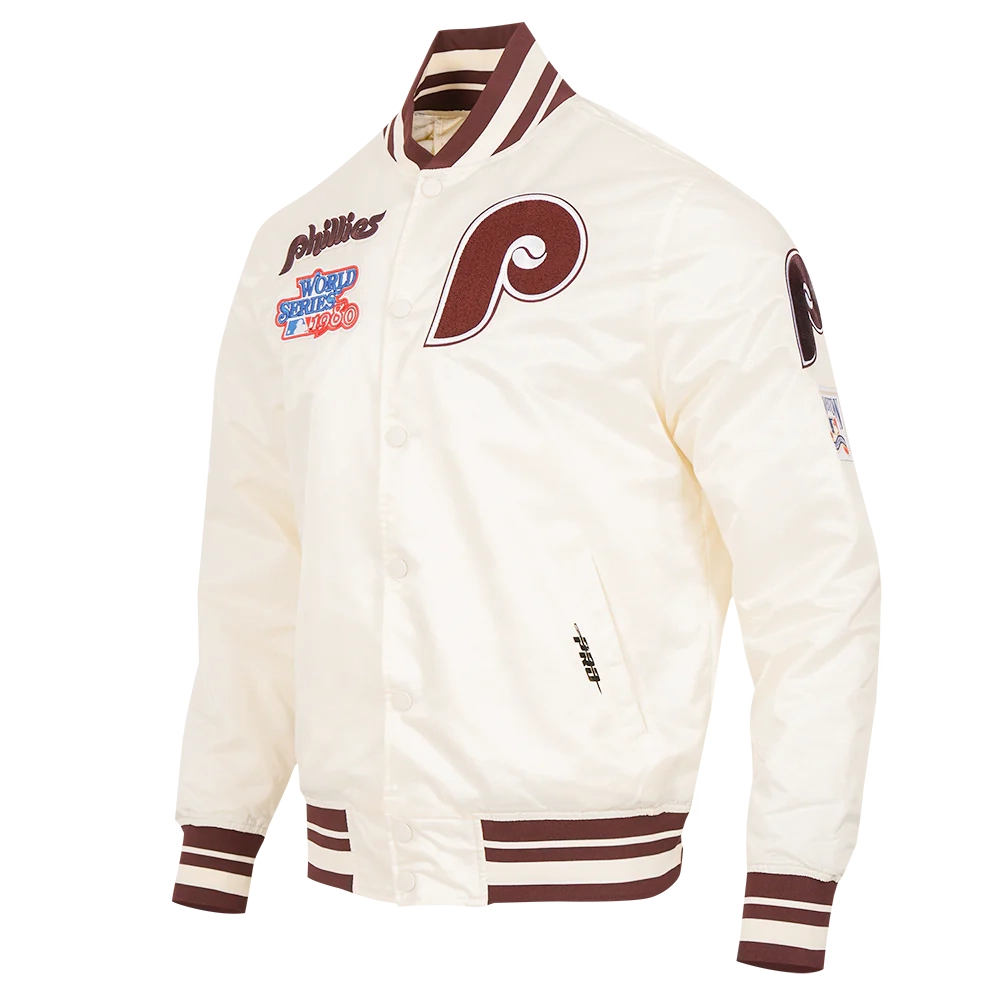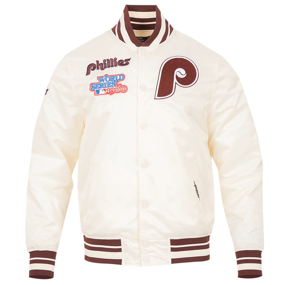 Philadelphia Phillies Retro Classic Full-Snap Satin Varsity White Jacket