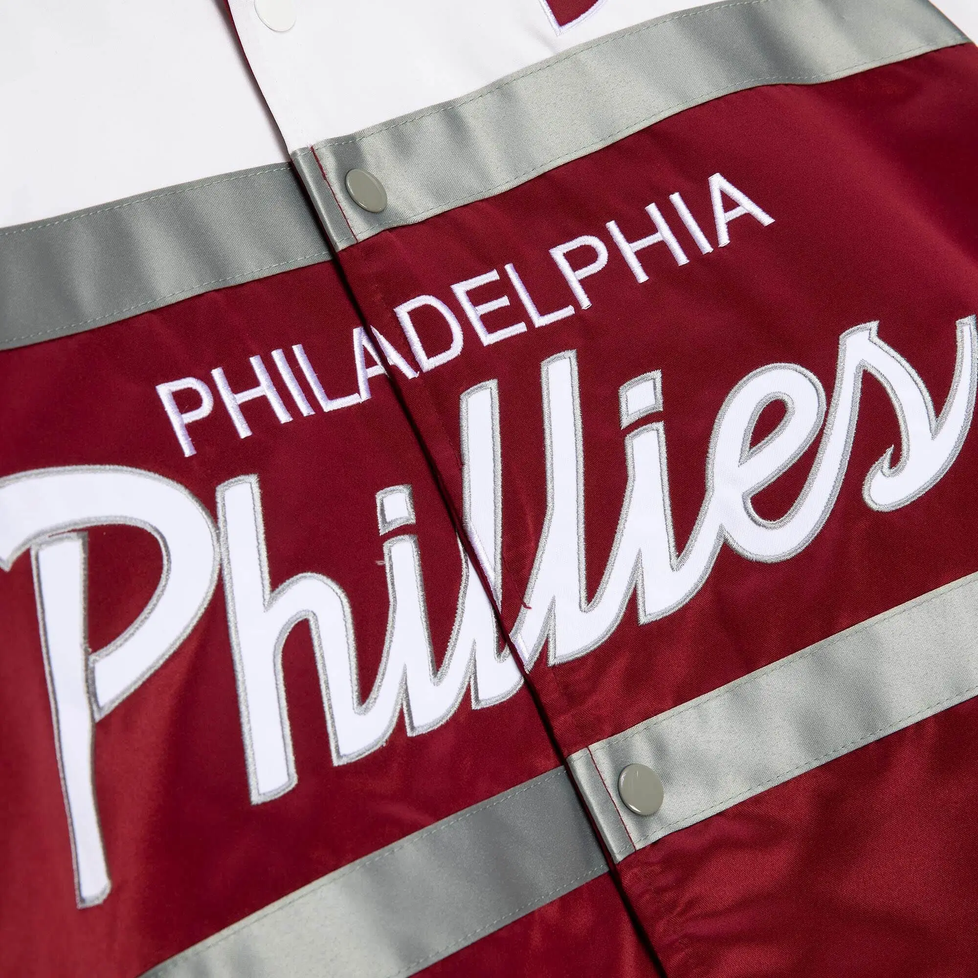 Philadelphia Phillies Special Script Satin Varsity Jacket – Red/White