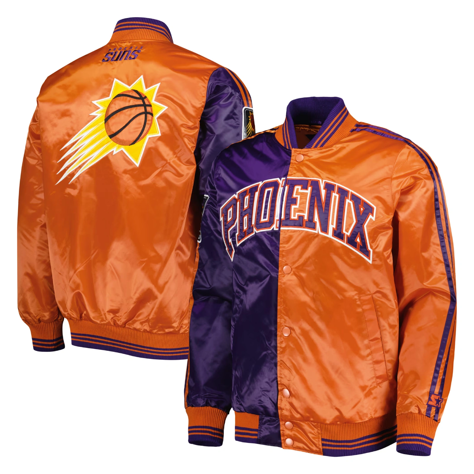 Phoenix Suns Fast Break Satin Varsity Orange and Purple Jacket