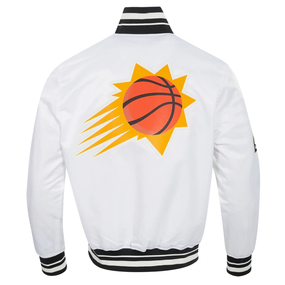 Phoenix Suns Script Tail Full-Snap White Satin Varsity Jacket