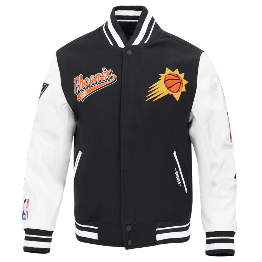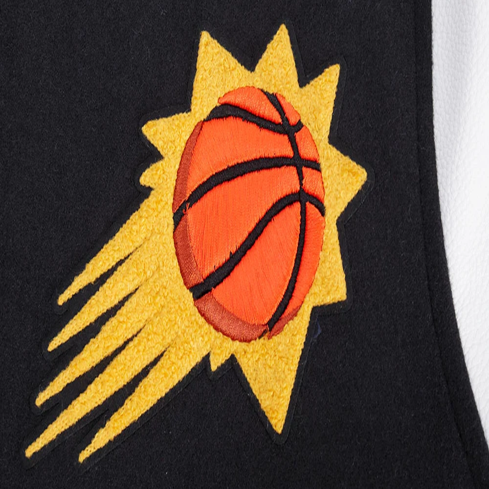 Phoenix Suns Script Tail Wool & Leather Varsity Jacket Black and White