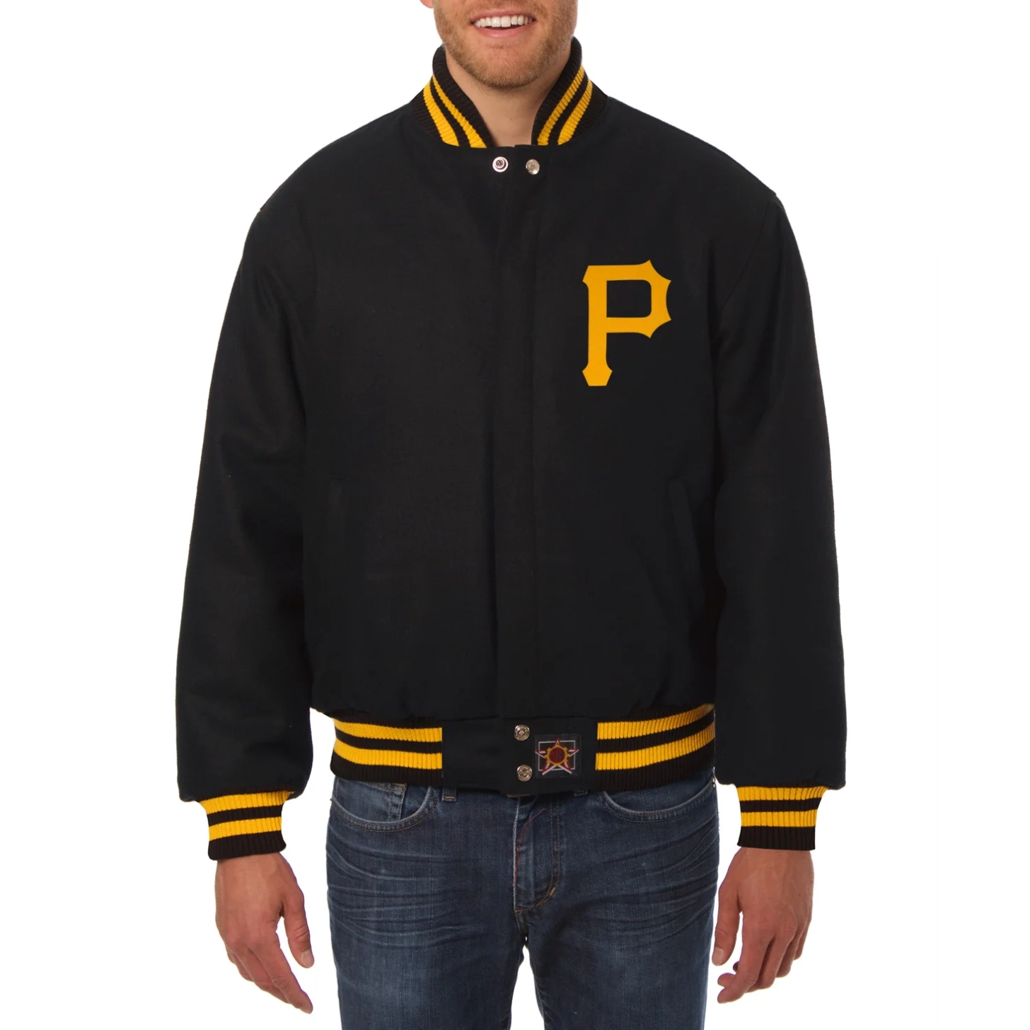 Pittsburgh Pirates One Color Handcrafted Logo Black Wool Varsity Jacket