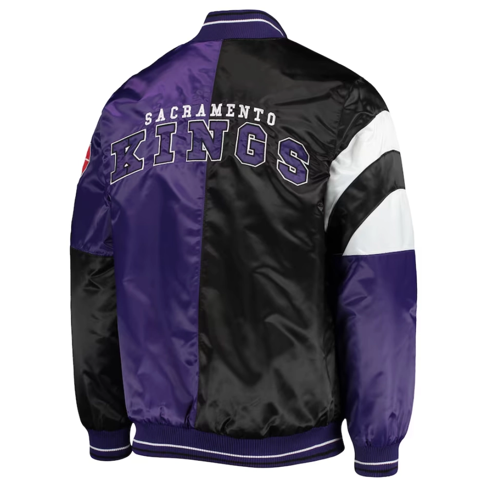 Sacramento Kings Leader Black and Purple Satin Varsity Jacket